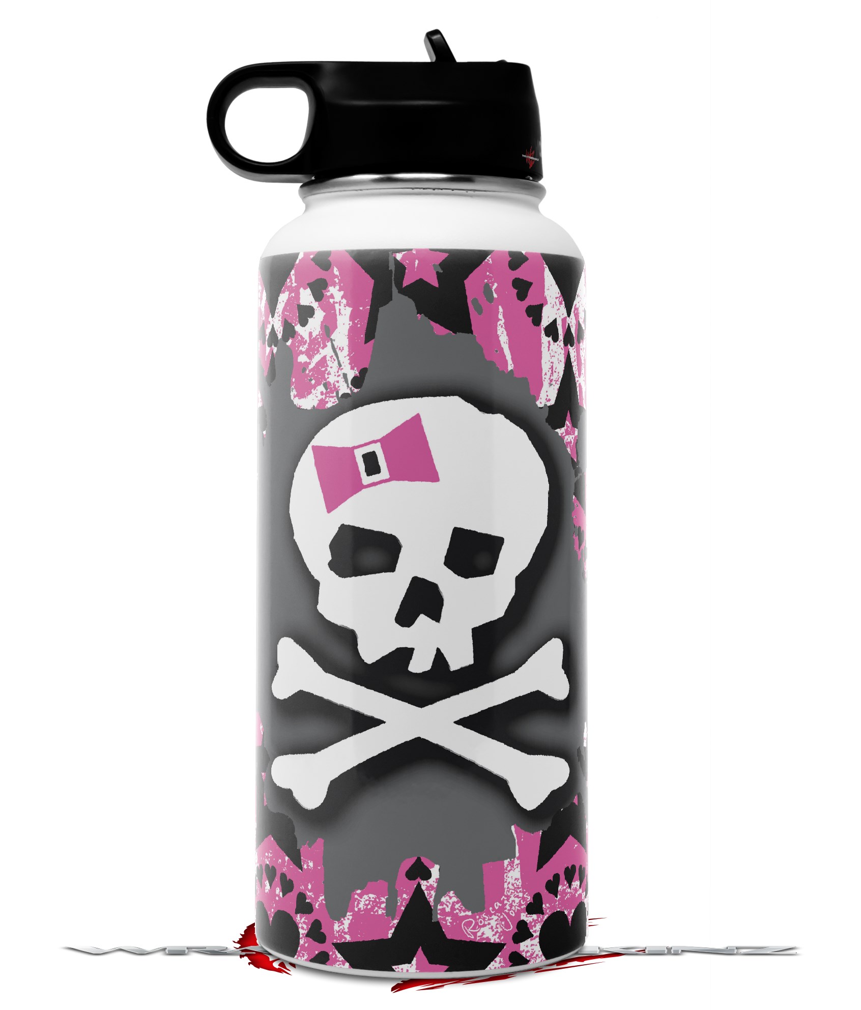 Skin Wrap Decal compatible with Hydro Flask Wide Mouth Bottle 32oz Pink Bow Skull (BOTTLE NOT INCLUDED)