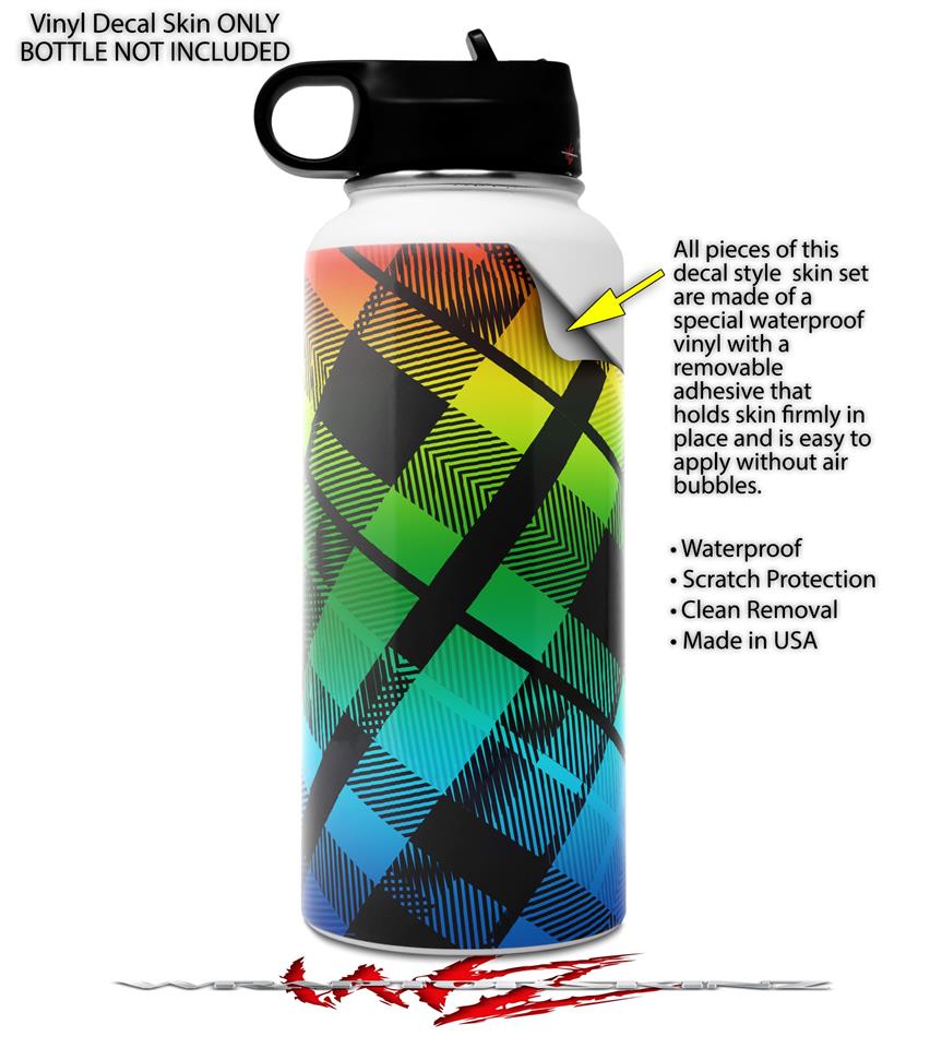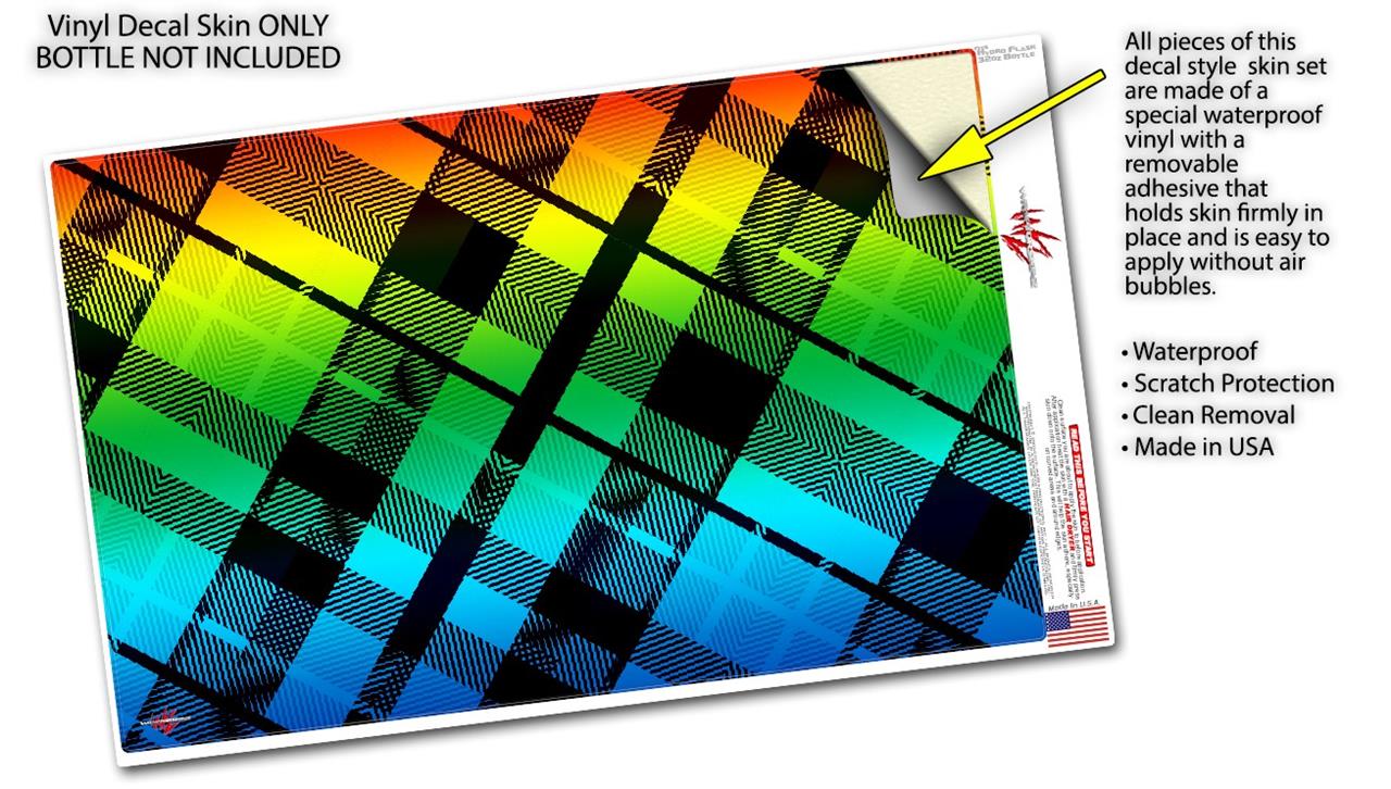 Skin Wrap Decal compatible with Hydro Flask Wide Mouth Bottle 32oz Rainbow Plaid (BOTTLE NOT INCLUDED)