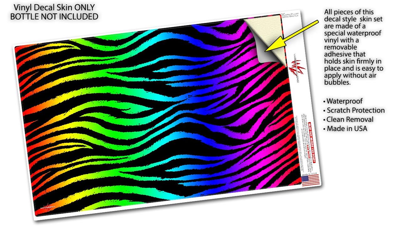 Skin Wrap Decal compatible with Hydro Flask Wide Mouth Bottle 32oz Rainbow Zebra (BOTTLE NOT INCLUDED)
