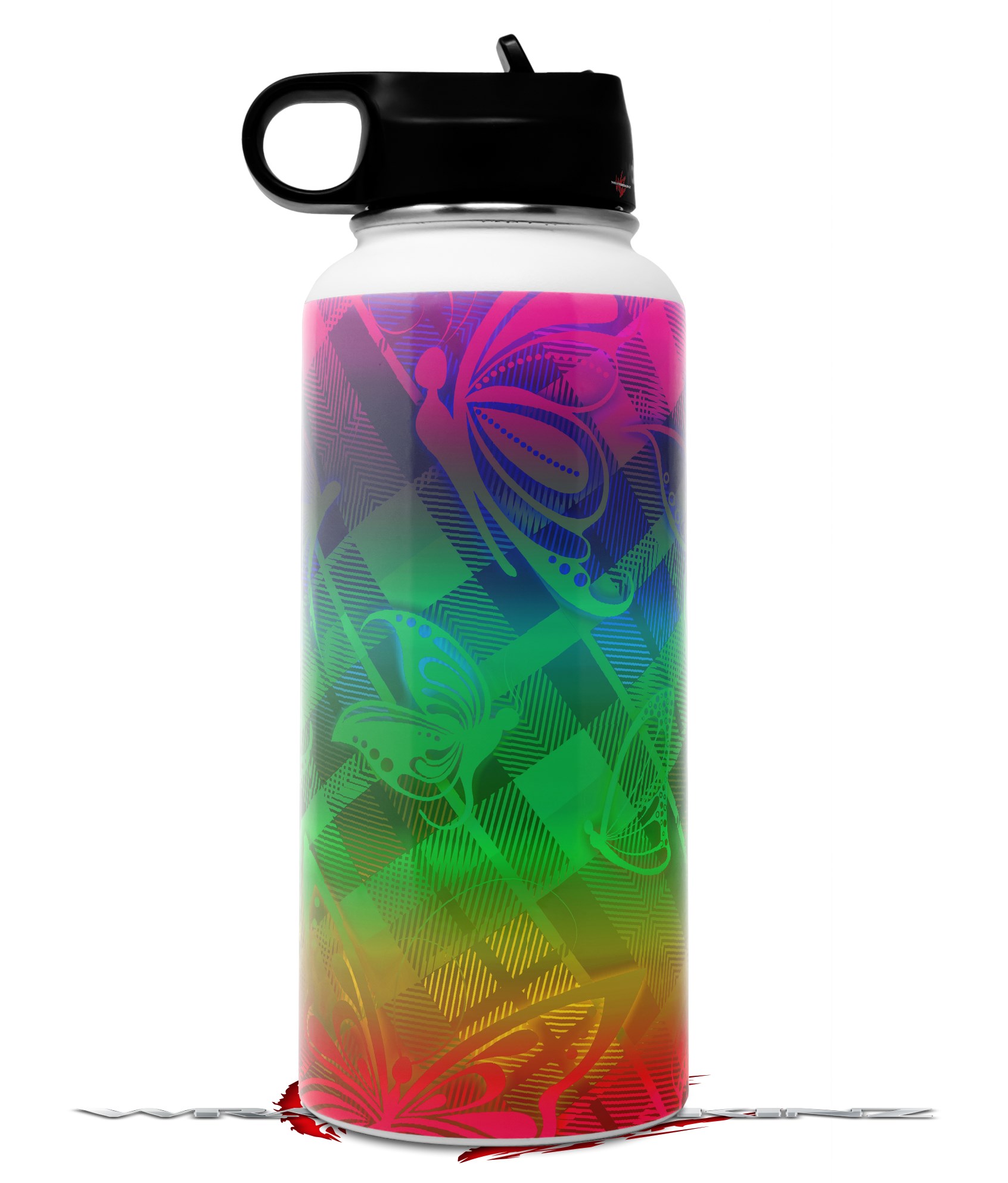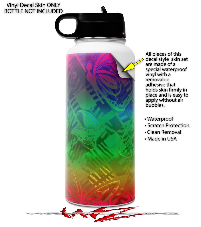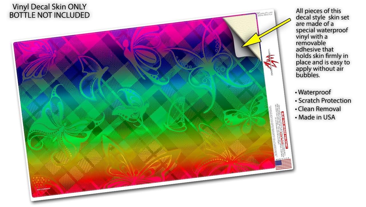 Skin Wrap Decal compatible with Hydro Flask Wide Mouth Bottle 32oz Rainbow Butterflies (BOTTLE NOT INCLUDED)