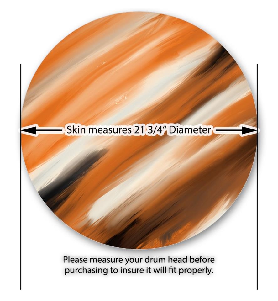 This design also available in other sizes. WraptorSkinz® skin wraps compatible with most kick drum heads. Printed using superb photo quality designs and vibrant colors printed with special fade resistant inks that last even in direct sun for years. WraptorSkinz are a composite three layer commercial grade materials vinyl. The bottom layer is a air release, grey block out removable adhesive that hides existing graphics on the drum head and is easily applied without air bubbles. The middle layer is a flexible vinyl printed with UV protected, fade resistant inks that deliver superb photo quality designs in vibrant colors. Finally, we bond a professional grade laminate over the entire skin adding a glossy protective finish.