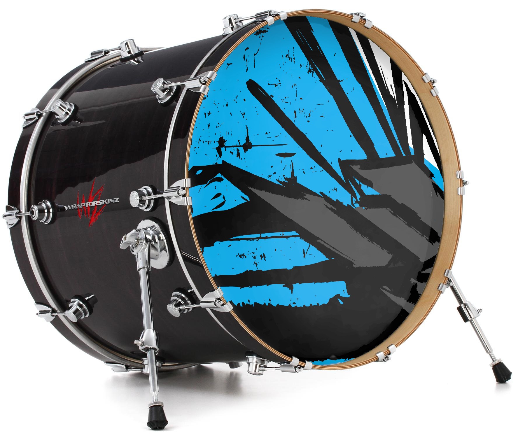 This design also available in other sizes. WraptorSkinz® skin wraps compatible with most kick drum heads. Printed using superb photo quality designs and vibrant colors printed with special fade resistant inks that last even in direct sun for years. WraptorSkinz are a composite three layer commercial grade materials vinyl. The bottom layer is a air release, grey block out removable adhesive that hides existing graphics on the drum head and is easily applied without air bubbles. The middle layer is a flexible vinyl printed with UV protected, fade resistant inks that deliver superb photo quality designs in vibrant colors. Finally, we bond a professional grade laminate over the entire skin adding a glossy protective finish.