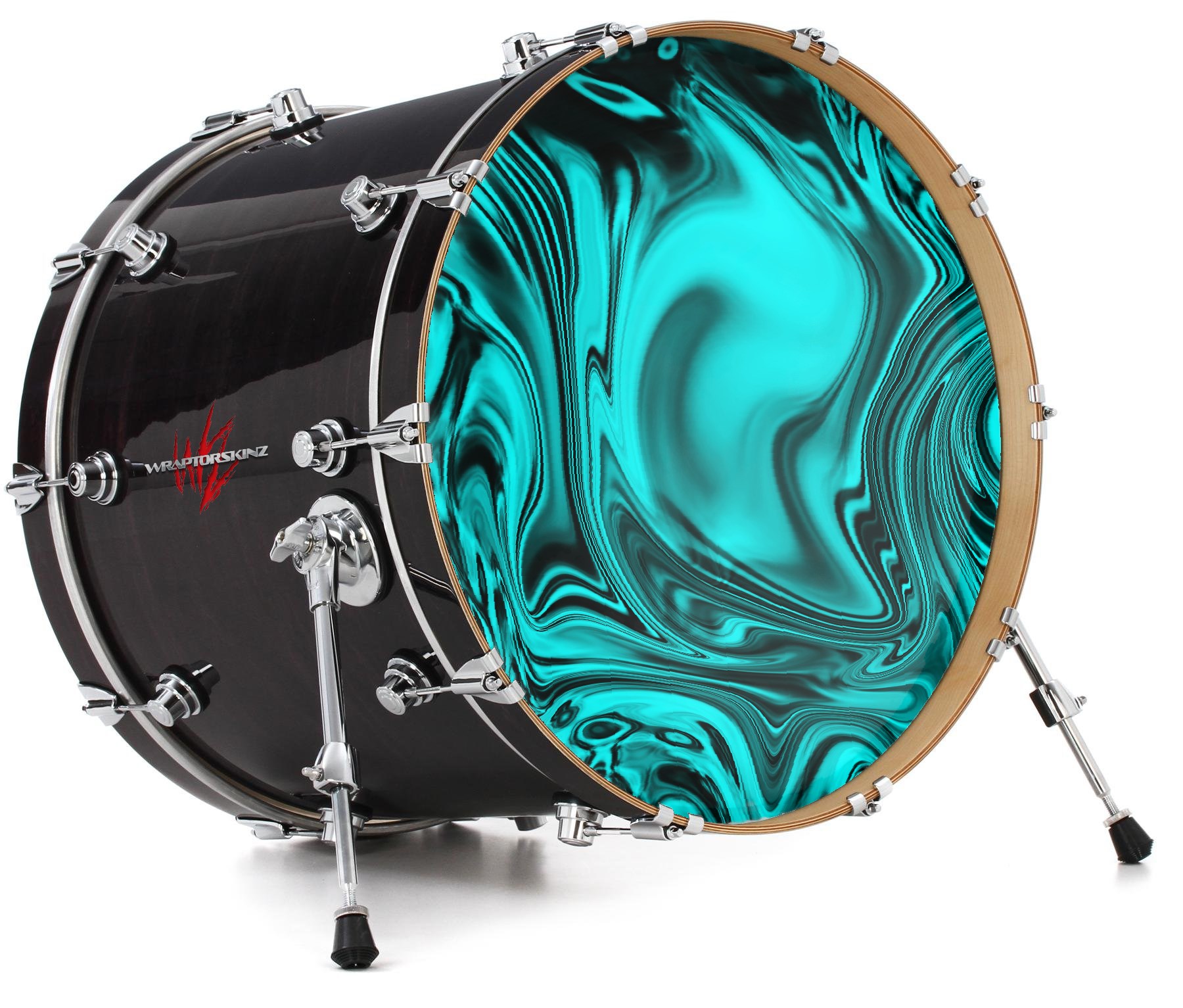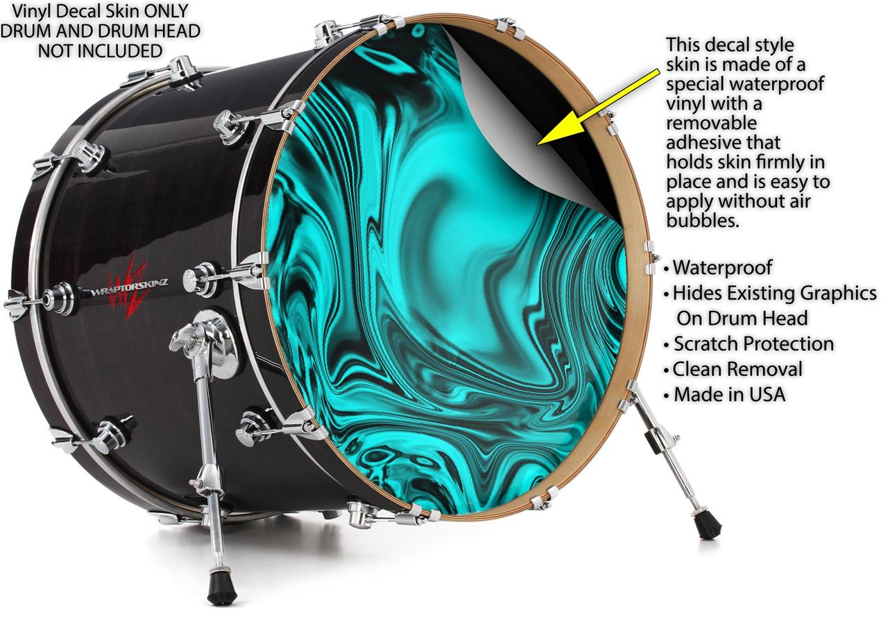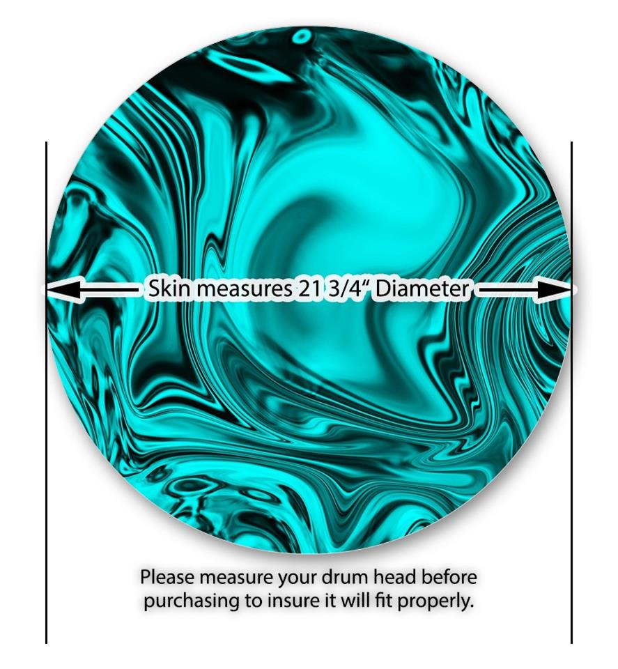 This design also available in other sizes. WraptorSkinz® skin wraps compatible with most kick drum heads. Printed using superb photo quality designs and vibrant colors printed with special fade resistant inks that last even in direct sun for years. WraptorSkinz are a composite three layer commercial grade materials vinyl. The bottom layer is a air release, grey block out removable adhesive that hides existing graphics on the drum head and is easily applied without air bubbles. The middle layer is a flexible vinyl printed with UV protected, fade resistant inks that deliver superb photo quality designs in vibrant colors. Finally, we bond a professional grade laminate over the entire skin adding a glossy protective finish.