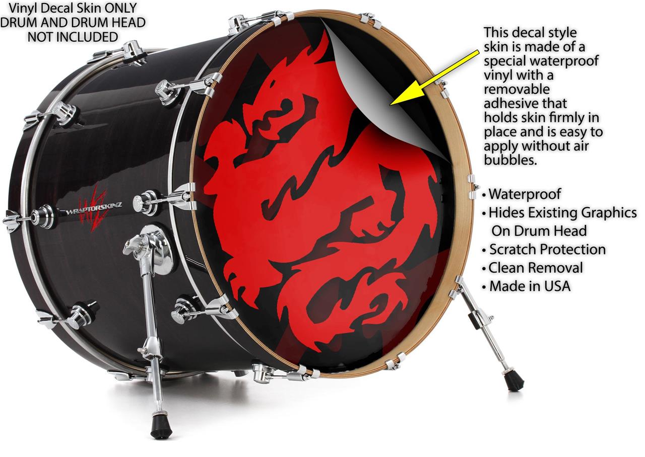 Vinyl Decal Skin Wrap for 22" Bass Kick Drum Head Oriental Dragon Red on Black - DRUM HEAD NOT INCLUDED