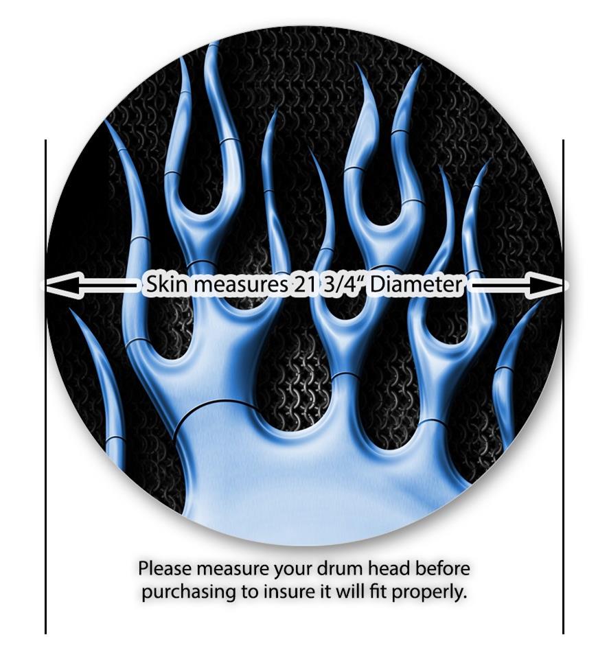 Vinyl Decal Skin Wrap for 22" Bass Kick Drum Head Metal Flames Blue - DRUM HEAD NOT INCLUDED