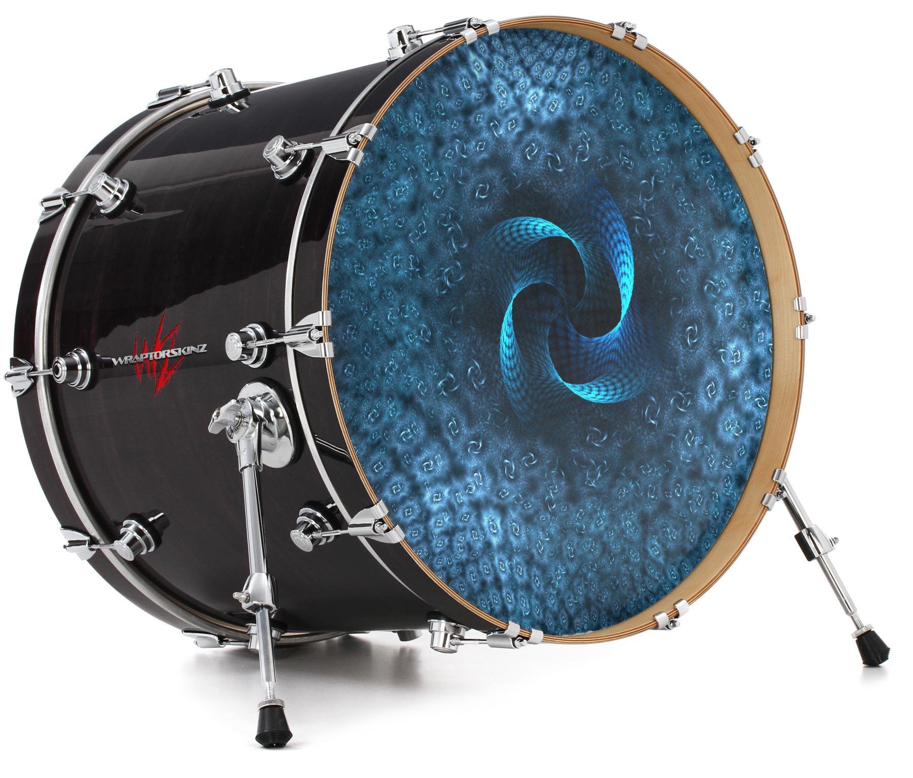 This design also available in other sizes. WraptorSkinz® skin wraps compatible with most kick drum heads. Printed using superb photo quality designs and vibrant colors printed with special fade resistant inks that last even in direct sun for years. WraptorSkinz are a composite three layer commercial grade materials vinyl. The bottom layer is a air release, grey block out removable adhesive that hides existing graphics on the drum head and is easily applied without air bubbles. The middle layer is a flexible vinyl printed with UV protected, fade resistant inks that deliver superb photo quality designs in vibrant colors. Finally, we bond a professional grade laminate over the entire skin adding a glossy protective finish.