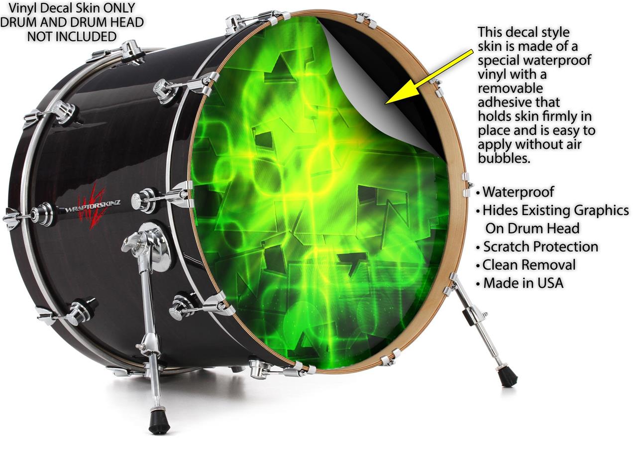 Vinyl Decal Skin Wrap for 22" Bass Kick Drum Head Cubic Shards Green - DRUM HEAD NOT INCLUDED
