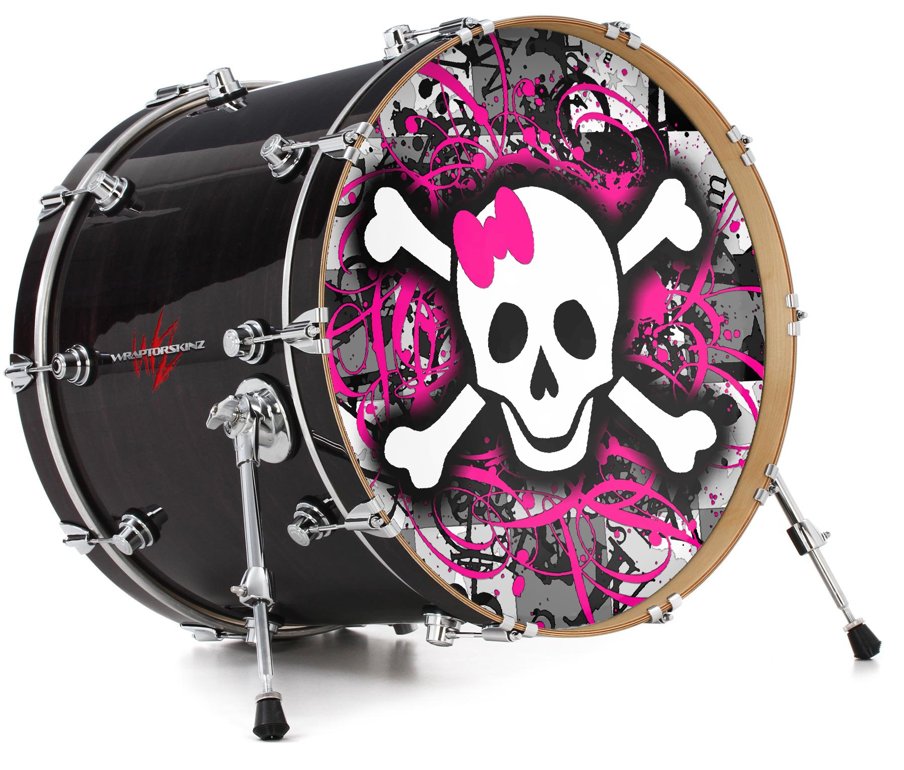 Vinyl Decal Skin Wrap for 22" Bass Kick Drum Head Splatter Girly Skull - DRUM HEAD NOT INCLUDED