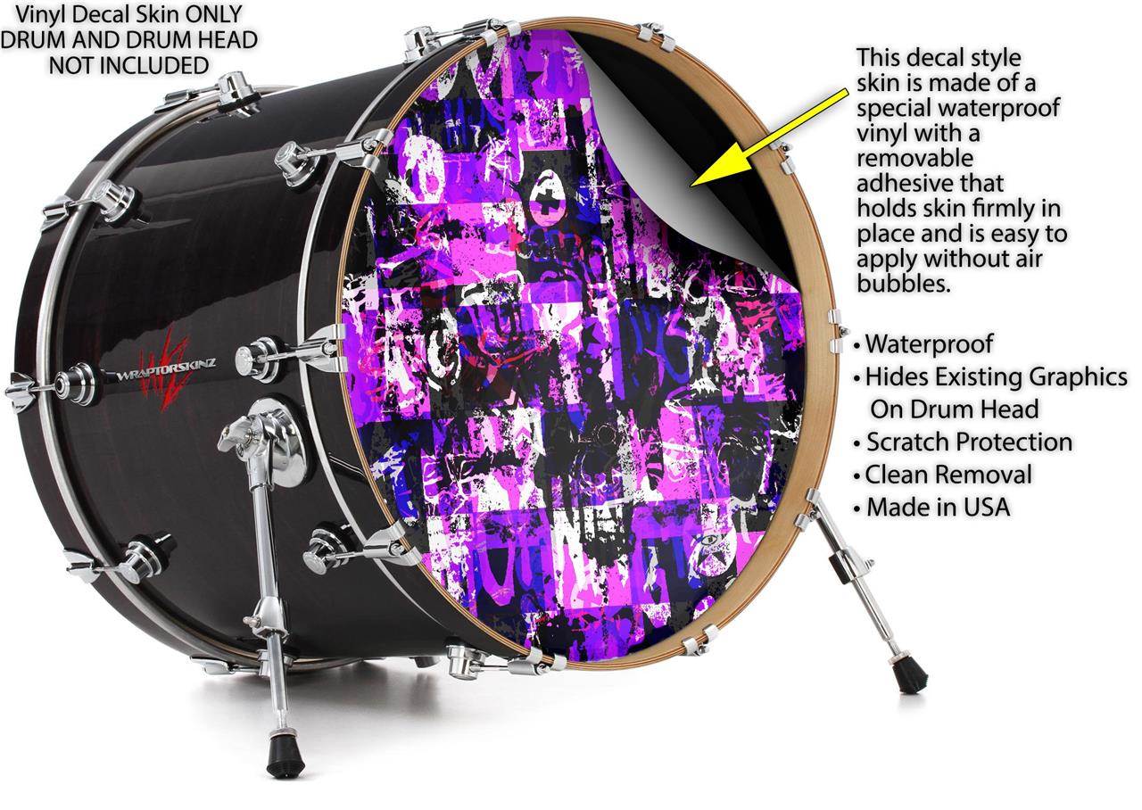 Vinyl Decal Skin Wrap for 22" Bass Kick Drum Head Purple Graffiti - DRUM HEAD NOT INCLUDED