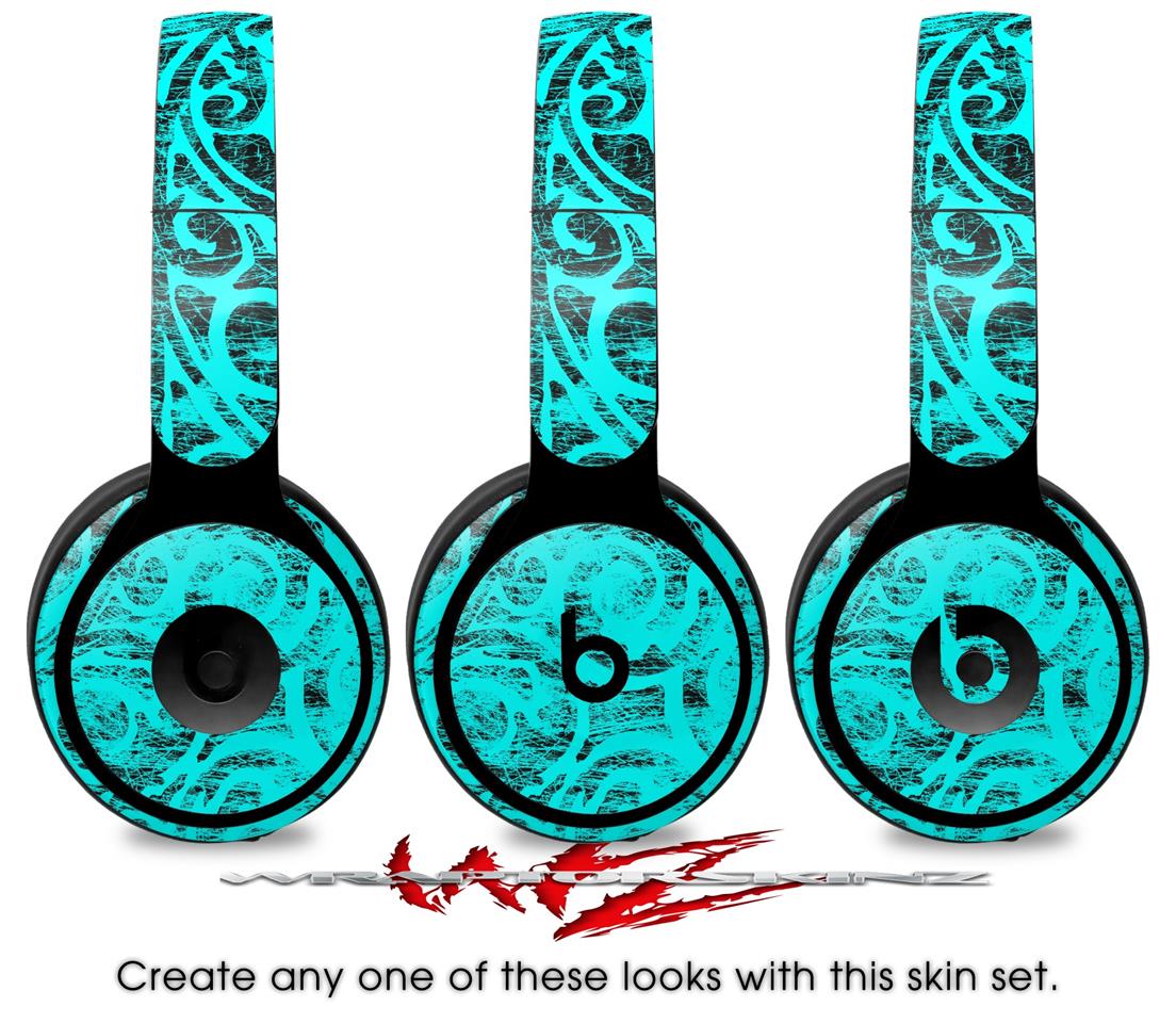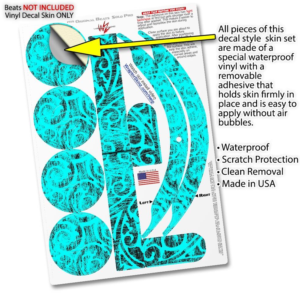 WraptorSkinz Skin Skin Decal Wrap works with Beats Solo Pro (Original) Headphones Folder Doodles Neon Teal Skin Only BEATS NOT INCLUDED
