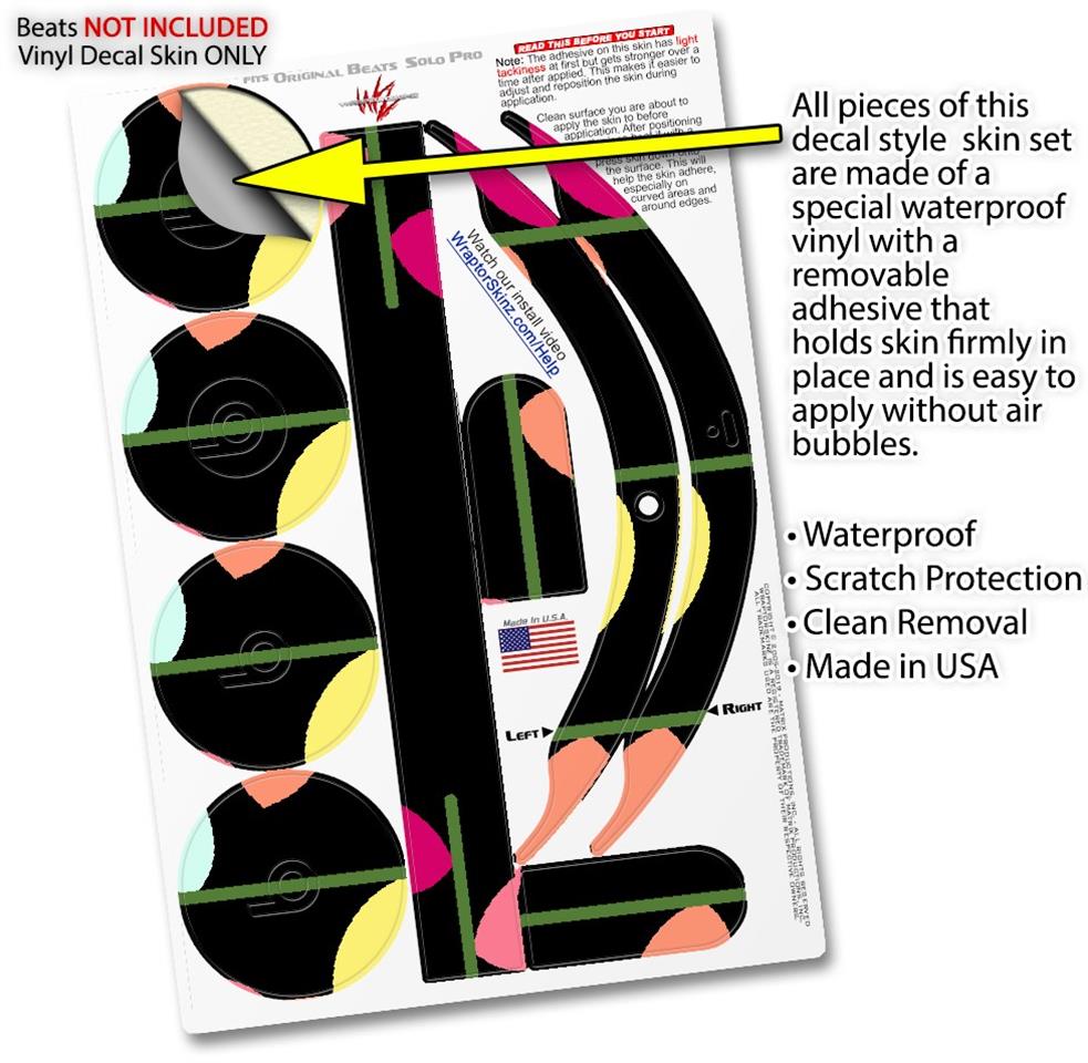 This product is in no way affiliated with or endorsed by Apple or Beats brand products. WraptorSkinz® skin wraps work with the Original Beats Solo Pro version 1 headphones. Printed using superb photo quality designs and vibrant colors printed with special fade resistant inks that last even in direct sun for years. WraptorSkinz are a composite of two layers of commercial grade materials. The bottom layer is a soft, flexible vinyl with a special removable adhesive that is easily positioned, applied without air bubbles. Next, we print the bottom layer with UV protected, fade resistant inks that deliver superb photo quality designs in vibrant colors. Finally, we bond a professional grade laminate over the entire skin adding a glossy protective finish.
