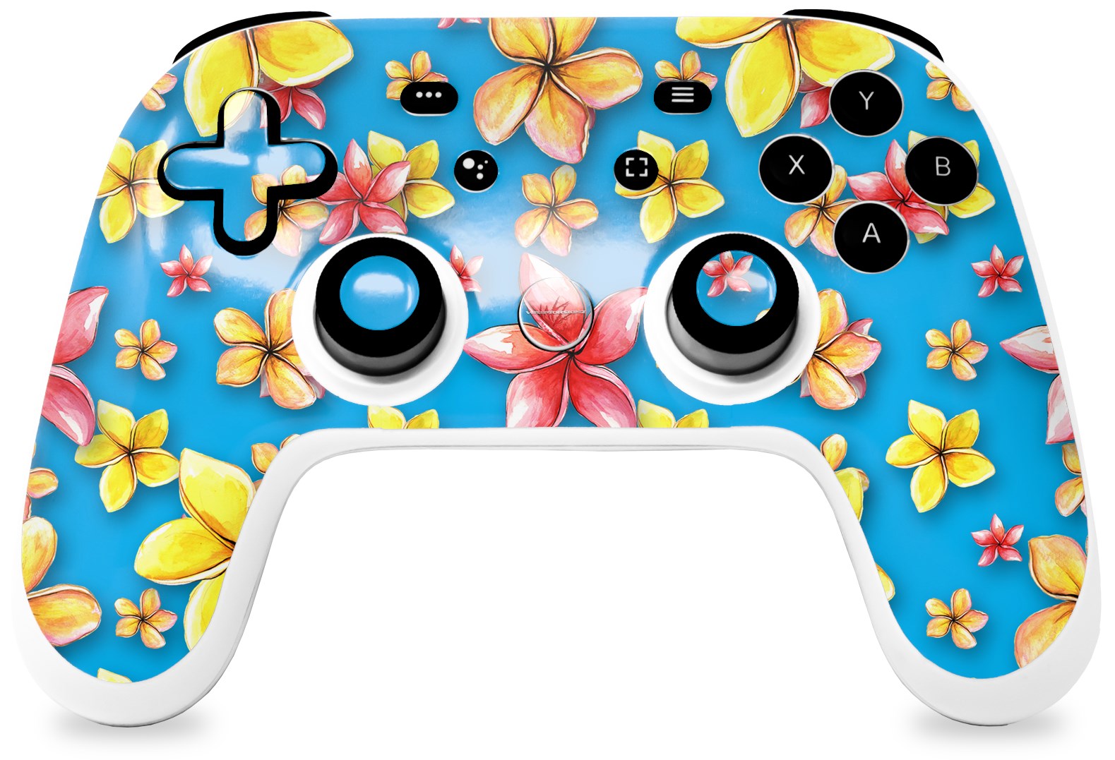 Skin Decal Wrap works with Original Google Stadia Controller Beach Flowers Blue Medium Skin Only CONTROLLER NOT INCLUDED