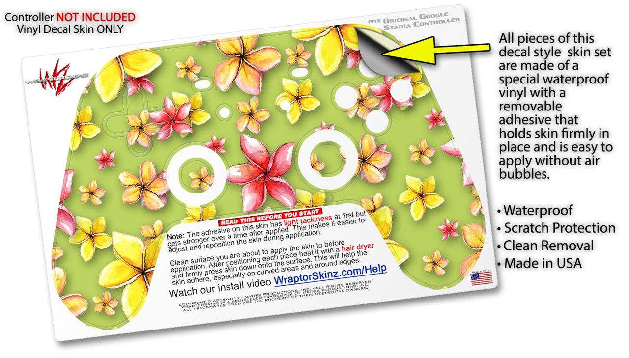 This product is in no way affiliated with or endorsed by Google. WraptorSkinz® skin wraps work with the Original Google Stadia version 1 Controller. Printed using superb photo quality designs and vibrant colors printed with special fade resistant inks that last even in direct sun for years. WraptorSkinz are a composite of two layers of commercial grade materials. The bottom layer is a soft, flexible vinyl with a special removable adhesive that is easily positioned, applied without air bubbles. Next, we print the bottom layer with UV protected, fade resistant inks that deliver superb photo quality designs in vibrant colors. Finally, we bond a professional grade laminate over the entire skin adding a glossy protective finish.