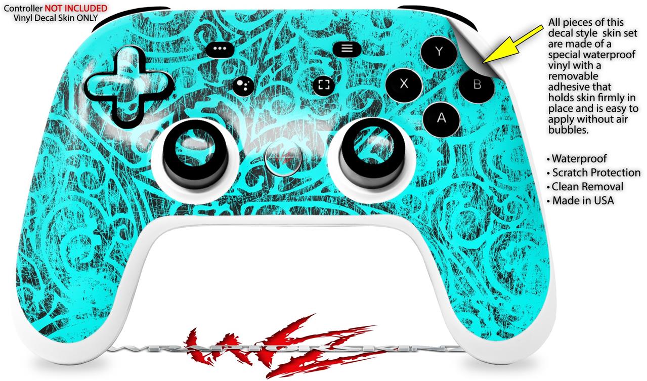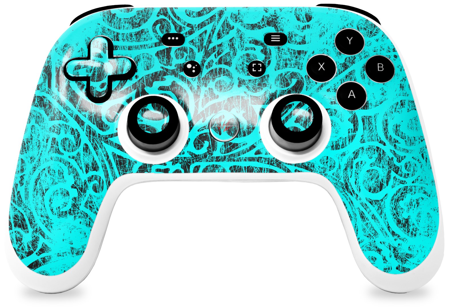 Skin Decal Wrap works with Original Google Stadia Controller Folder Doodles Neon Teal Skin Only CONTROLLER NOT INCLUDED