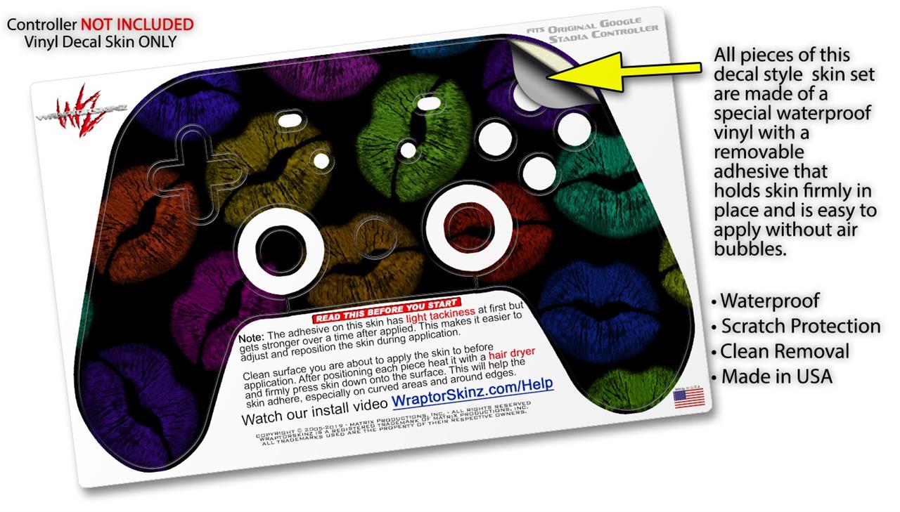 Skin Decal Wrap works with Original Google Stadia Controller Rainbow Lips Black Skin Only CONTROLLER NOT INCLUDED