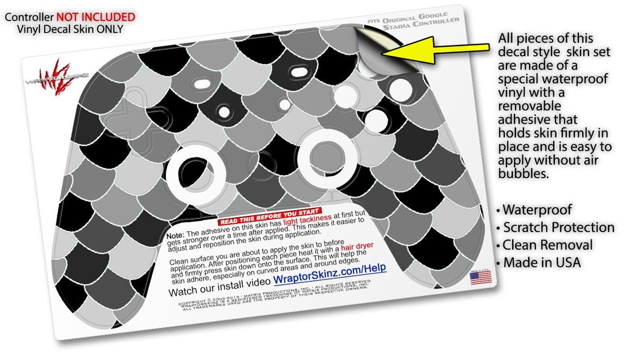 Skin Decal Wrap works with Original Google Stadia Controller Scales Black Skin Only CONTROLLER NOT INCLUDED
