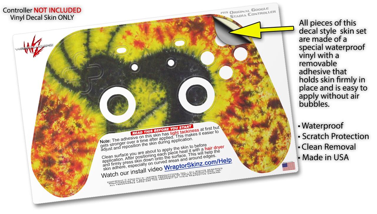 This product is in no way affiliated with or endorsed by Google. WraptorSkinz® skin wraps work with the Original Google Stadia version 1 Controller. Printed using superb photo quality designs and vibrant colors printed with special fade resistant inks that last even in direct sun for years. WraptorSkinz are a composite of two layers of commercial grade materials. The bottom layer is a soft, flexible vinyl with a special removable adhesive that is easily positioned, applied without air bubbles. Next, we print the bottom layer with UV protected, fade resistant inks that deliver superb photo quality designs in vibrant colors. Finally, we bond a professional grade laminate over the entire skin adding a glossy protective finish.