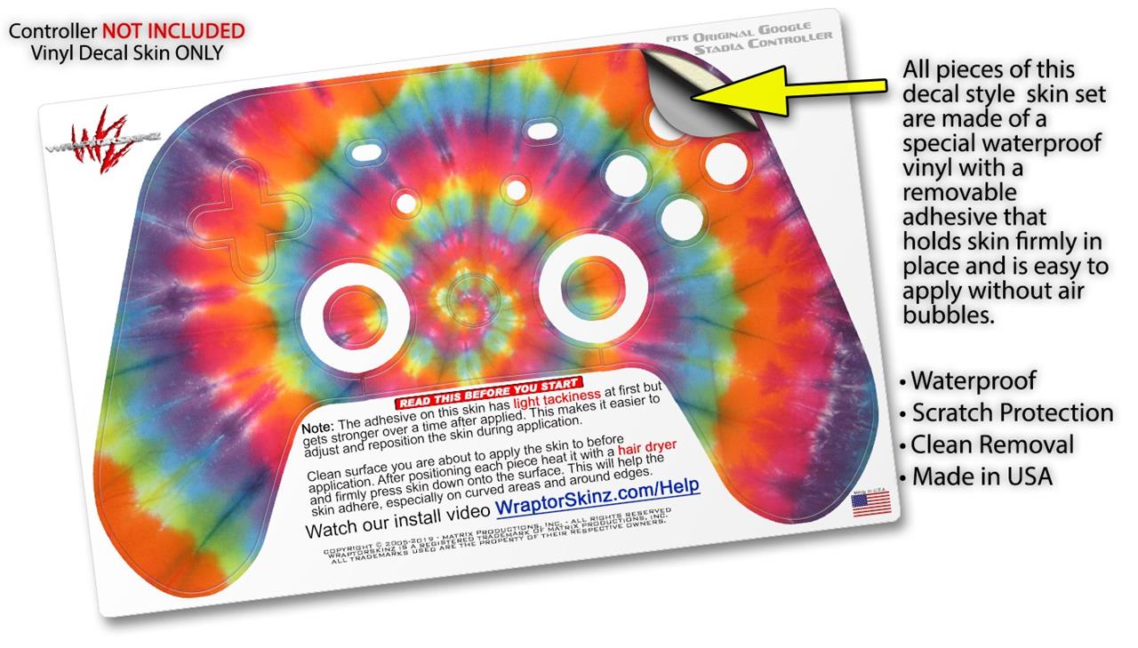 Skin Decal Wrap works with Original Google Stadia Controller Tie Dye Swirl 107 Skin Only CONTROLLER NOT INCLUDED