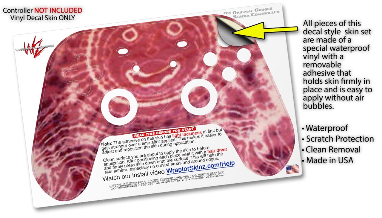 This product is in no way affiliated with or endorsed by Google. WraptorSkinz® skin wraps work with the Original Google Stadia version 1 Controller. Printed using superb photo quality designs and vibrant colors printed with special fade resistant inks that last even in direct sun for years. WraptorSkinz are a composite of two layers of commercial grade materials. The bottom layer is a soft, flexible vinyl with a special removable adhesive that is easily positioned, applied without air bubbles. Next, we print the bottom layer with UV protected, fade resistant inks that deliver superb photo quality designs in vibrant colors. Finally, we bond a professional grade laminate over the entire skin adding a glossy protective finish.