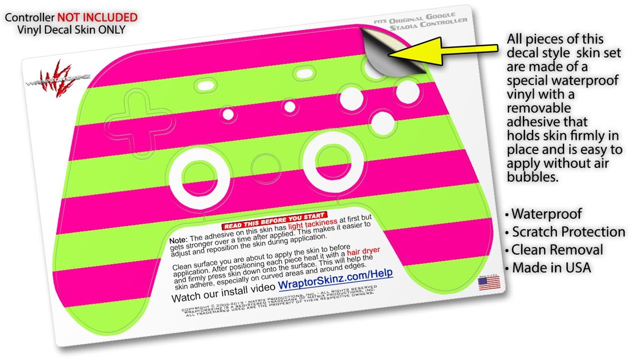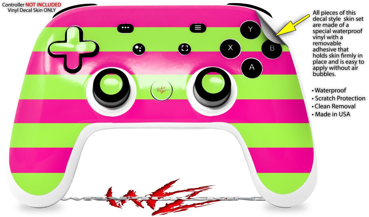 Skin Decal Wrap works with Original Google Stadia Controller Psycho Stripes Neon Green and Hot Pink Skin Only CONTROLLER NOT INCLUDED