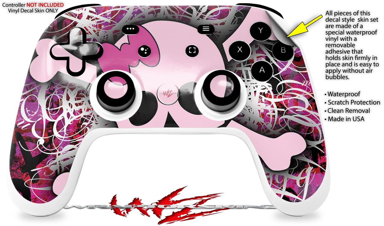 Skin Decal Wrap works with Original Google Stadia Controller Pink Skull Skin Only CONTROLLER NOT INCLUDED