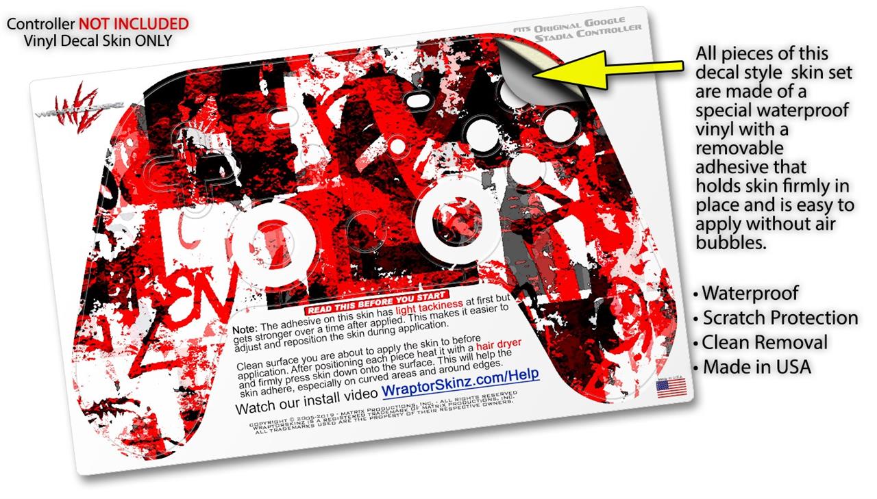 Skin Decal Wrap works with Original Google Stadia Controller Red Graffiti Skin Only CONTROLLER NOT INCLUDED
