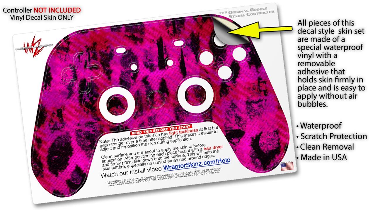 Skin Decal Wrap works with Original Google Stadia Controller Pink Distressed Leopard Skin Only CONTROLLER NOT INCLUDED