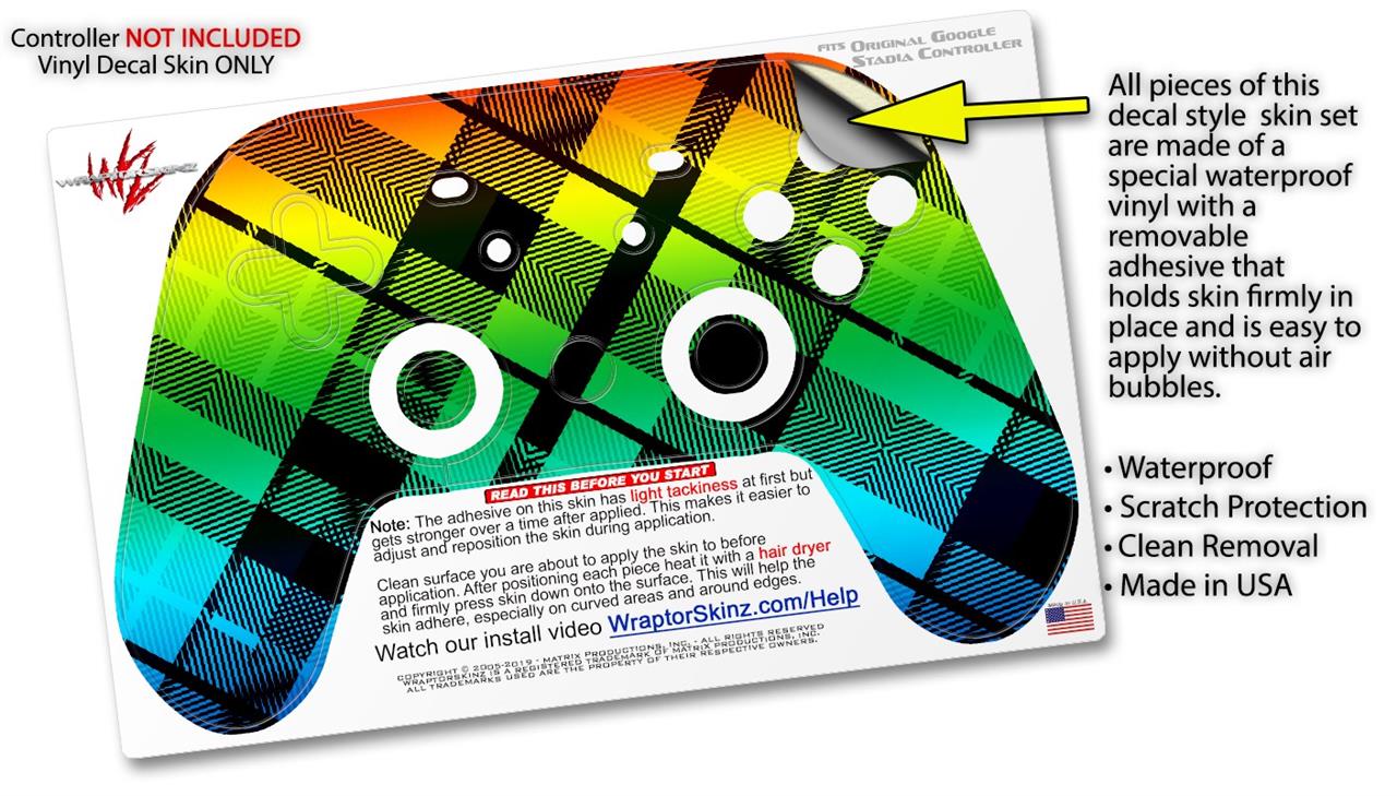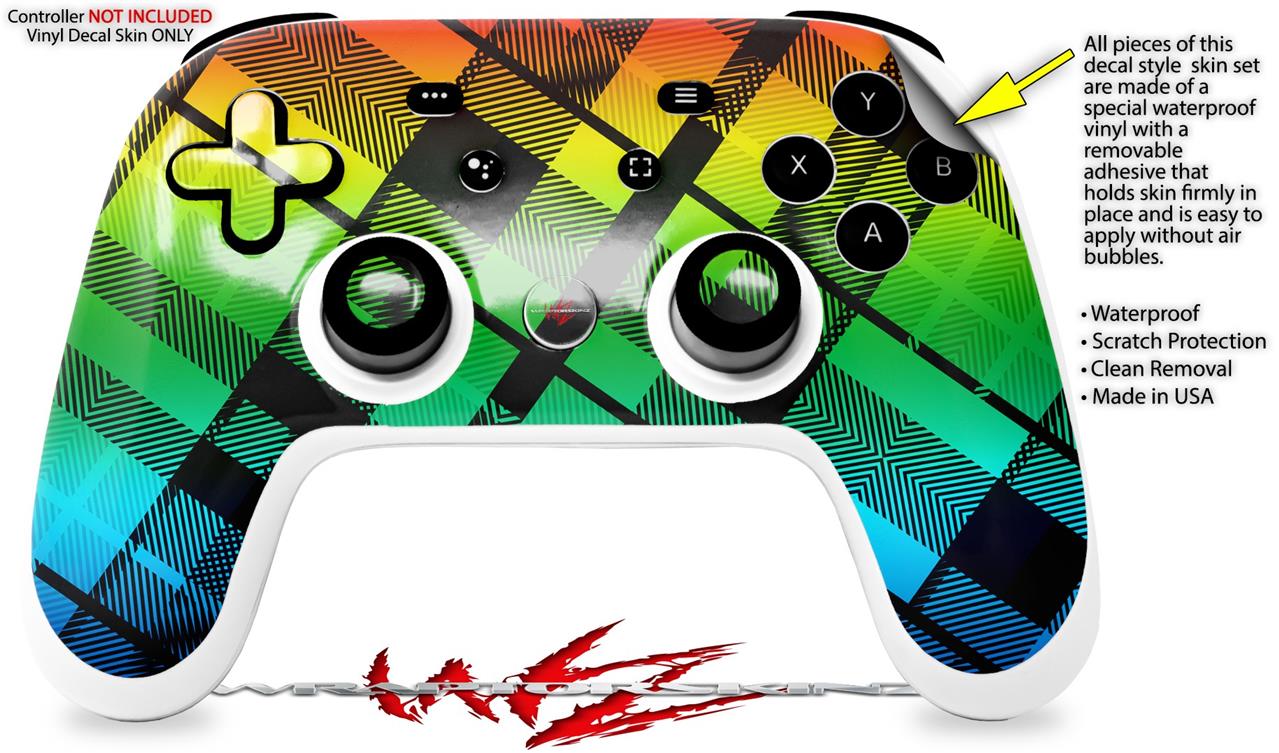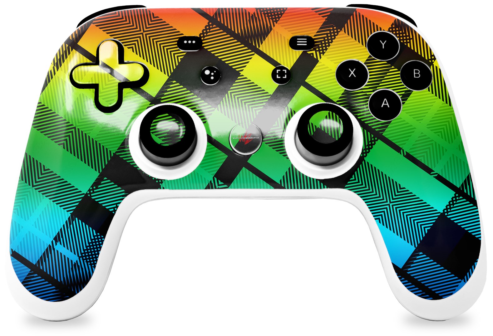 Skin Decal Wrap works with Original Google Stadia Controller Rainbow Plaid Skin Only CONTROLLER NOT INCLUDED