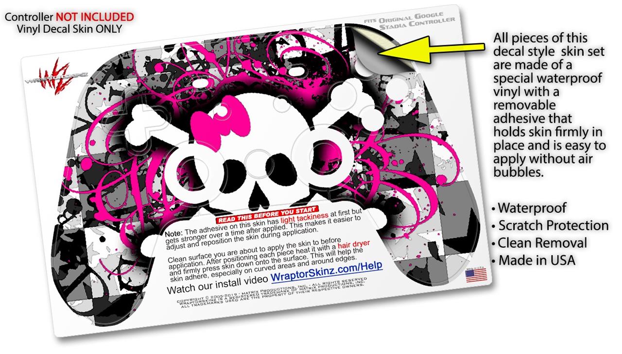 Skin Decal Wrap works with Original Google Stadia Controller Splatter Girly Skull Skin Only CONTROLLER NOT INCLUDED