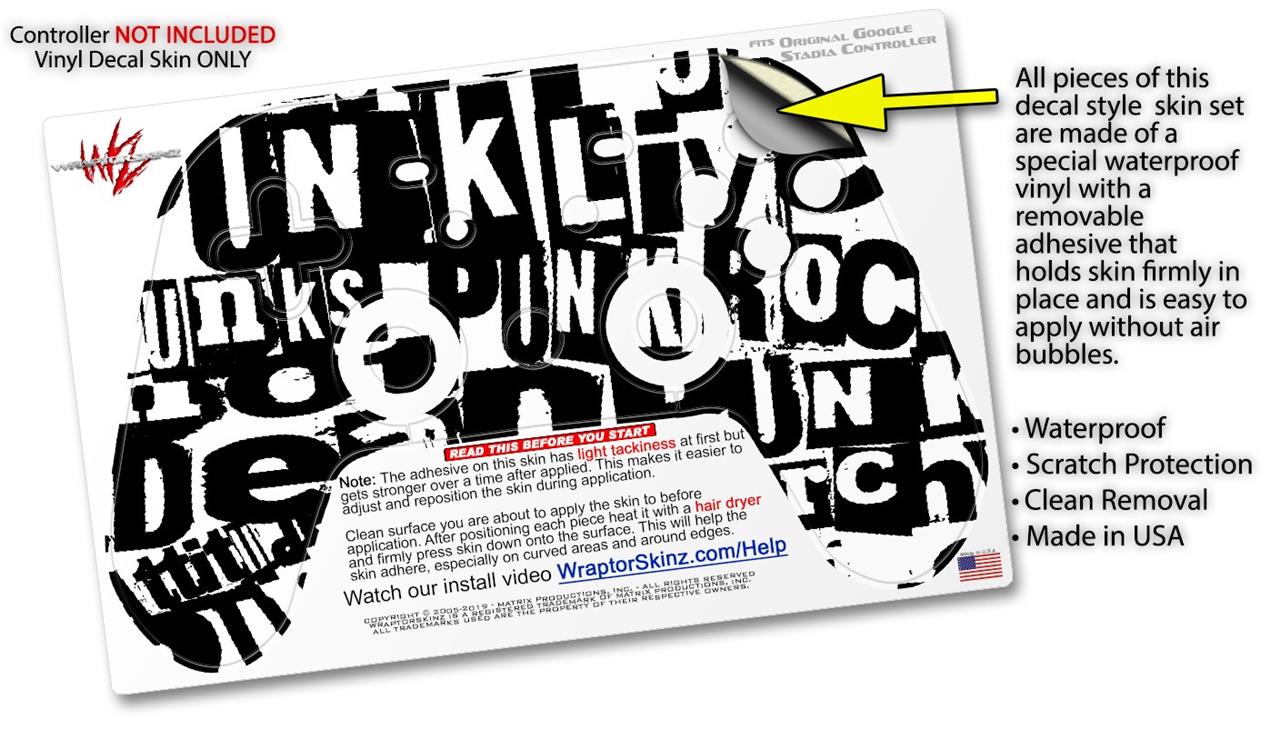 Skin Decal Wrap works with Original Google Stadia Controller Punk Rock Skin Only CONTROLLER NOT INCLUDED