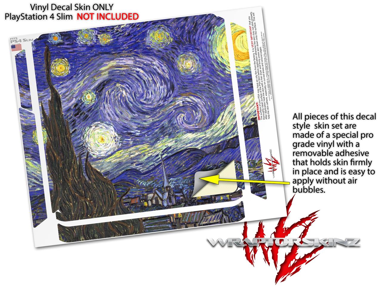 Vinyl Decal Skin Wrap compatible with Sony PlayStation 4 Slim Console Vincent Van Gogh Starry Night (PS4 NOT INCLUDED)