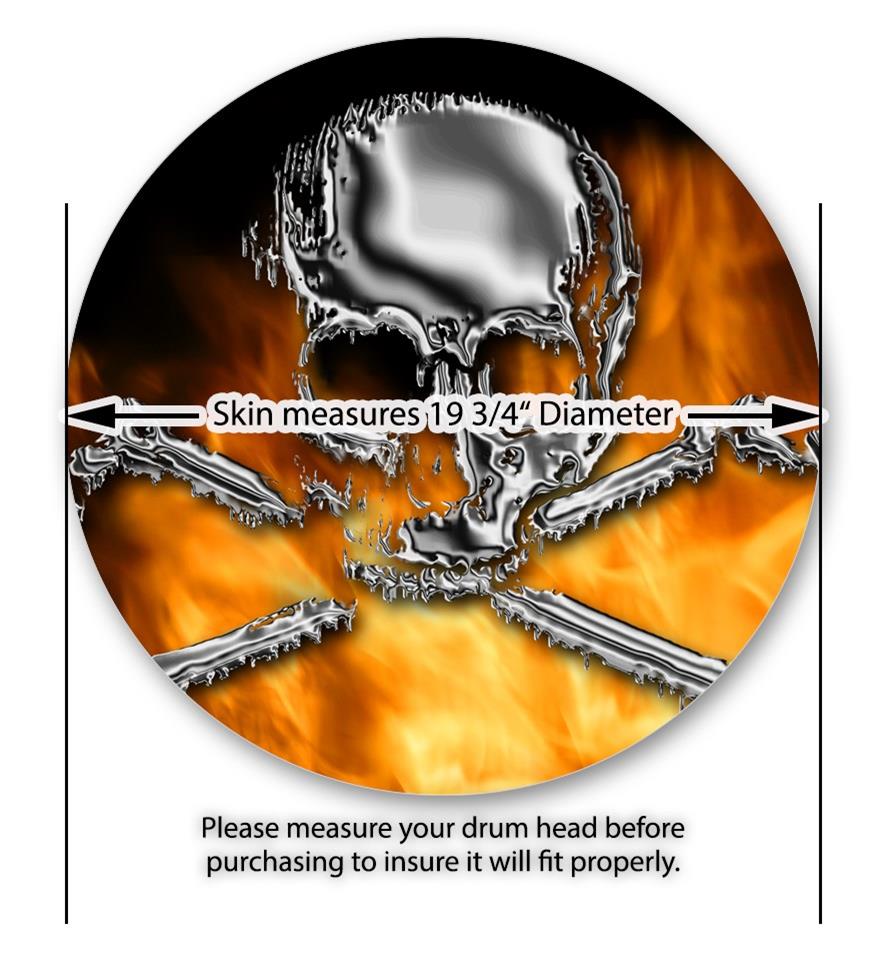 Vinyl Decal Skin Wrap for 20" Bass Kick Drum Head Chrome Skull on Fire - DRUM HEAD NOT INCLUDED
