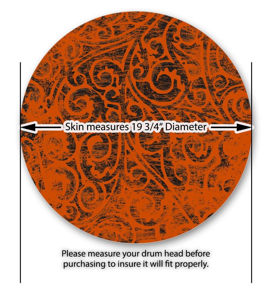 This design also available in other sizes. WraptorSkinz® skin wraps compatible with most kick drum heads. Printed using superb photo quality designs and vibrant colors printed with special fade resistant inks that last even in direct sun for years. WraptorSkinz are a composite three layer commercial grade materials vinyl. The bottom layer is a air release, grey block out removable adhesive that hides existing graphics on the drum head and is easily applied without air bubbles. The middle layer is a flexible vinyl printed with UV protected, fade resistant inks that deliver superb photo quality designs in vibrant colors. Finally, we bond a professional grade laminate over the entire skin adding a glossy protective finish.