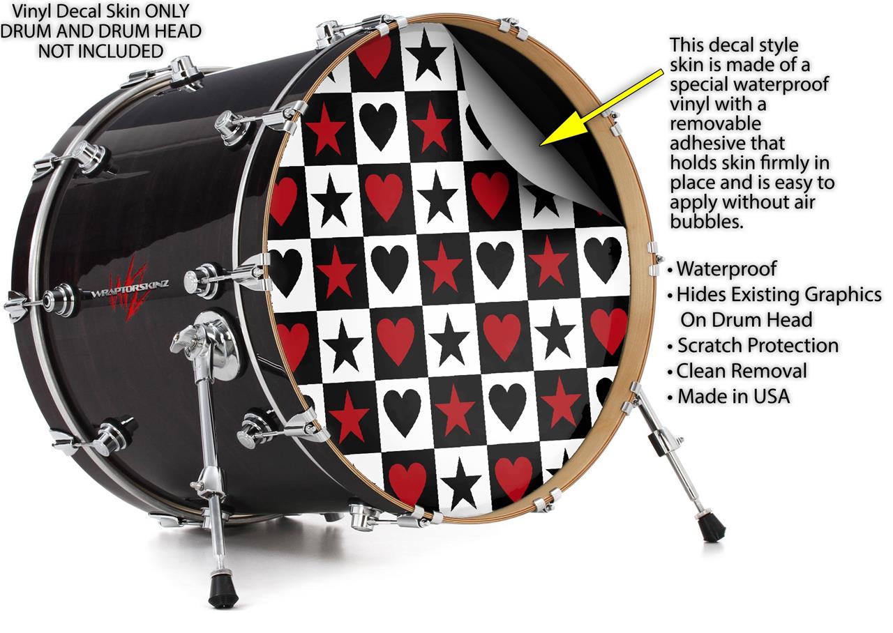 Vinyl Decal Skin Wrap for 20" Bass Kick Drum Head Hearts and Stars Red - DRUM HEAD NOT INCLUDED