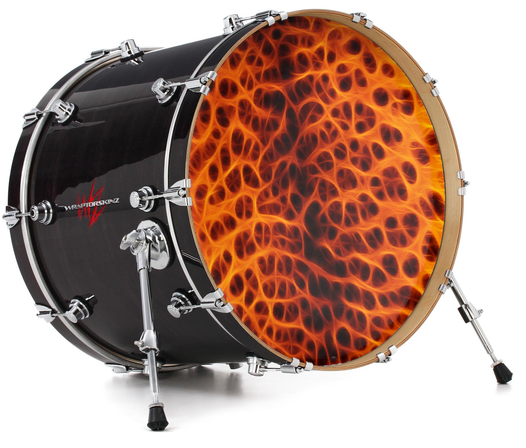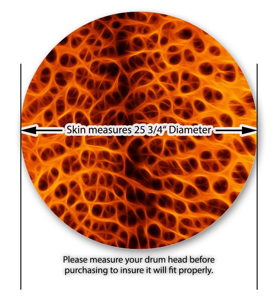 This design also available in other sizes. WraptorSkinz® skin wraps compatible with most kick drum heads. Printed using superb photo quality designs and vibrant colors printed with special fade resistant inks that last even in direct sun for years. WraptorSkinz are a composite three layer commercial grade materials vinyl. The bottom layer is a air release, grey block out removable adhesive that hides existing graphics on the drum head and is easily applied without air bubbles. The middle layer is a flexible vinyl printed with UV protected, fade resistant inks that deliver superb photo quality designs in vibrant colors. Finally, we bond a professional grade laminate over the entire skin adding a glossy protective finish.