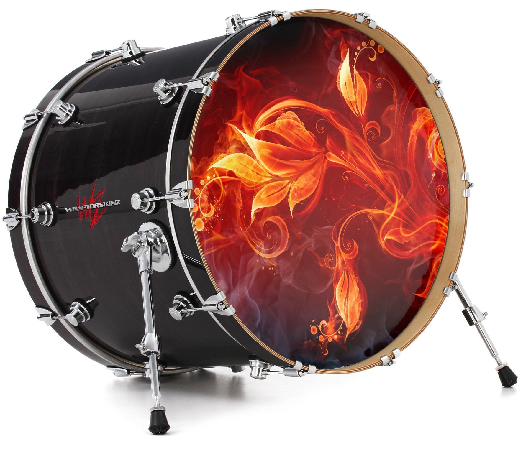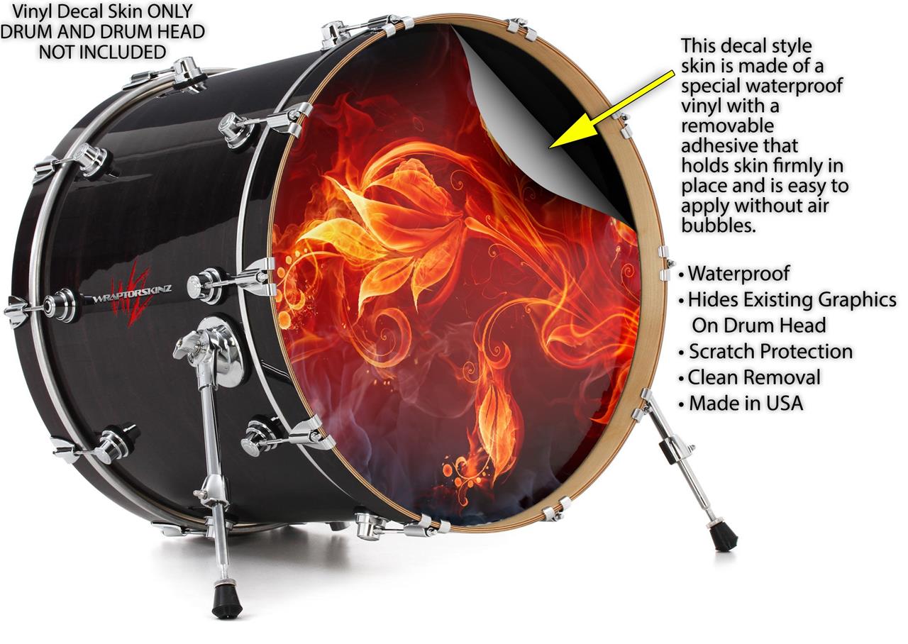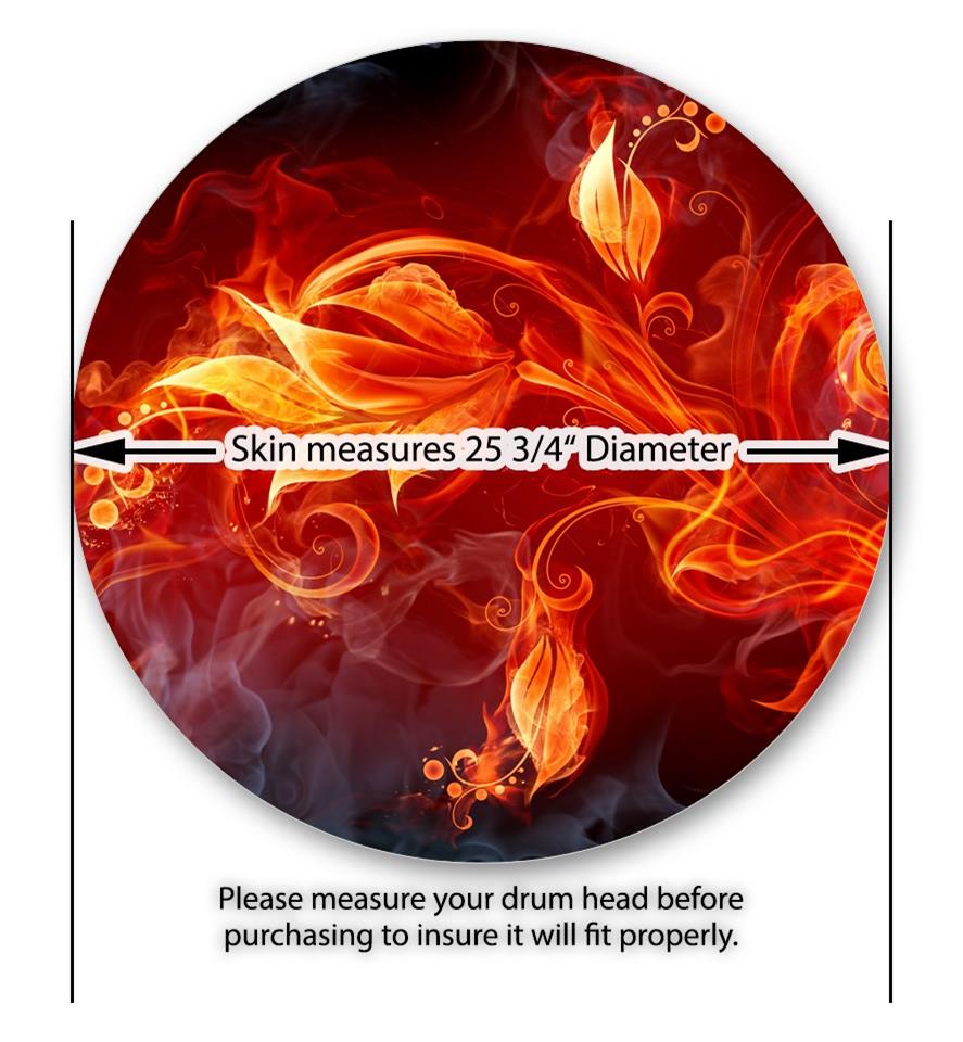Decal Skin works with most 26" Bass Kick Drum Heads Fire Flower - DRUM HEAD NOT INCLUDED