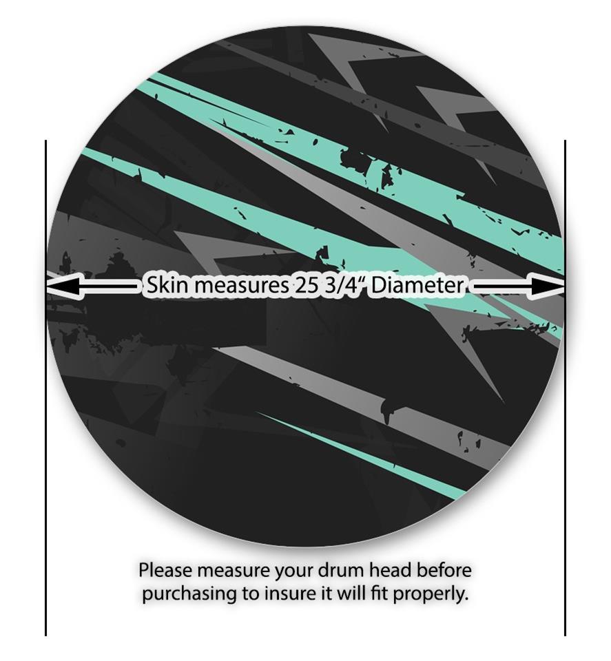 This design also available in other sizes. WraptorSkinz® skin wraps compatible with most kick drum heads. Printed using superb photo quality designs and vibrant colors printed with special fade resistant inks that last even in direct sun for years. WraptorSkinz are a composite three layer commercial grade materials vinyl. The bottom layer is a air release, grey block out removable adhesive that hides existing graphics on the drum head and is easily applied without air bubbles. The middle layer is a flexible vinyl printed with UV protected, fade resistant inks that deliver superb photo quality designs in vibrant colors. Finally, we bond a professional grade laminate over the entire skin adding a glossy protective finish.
