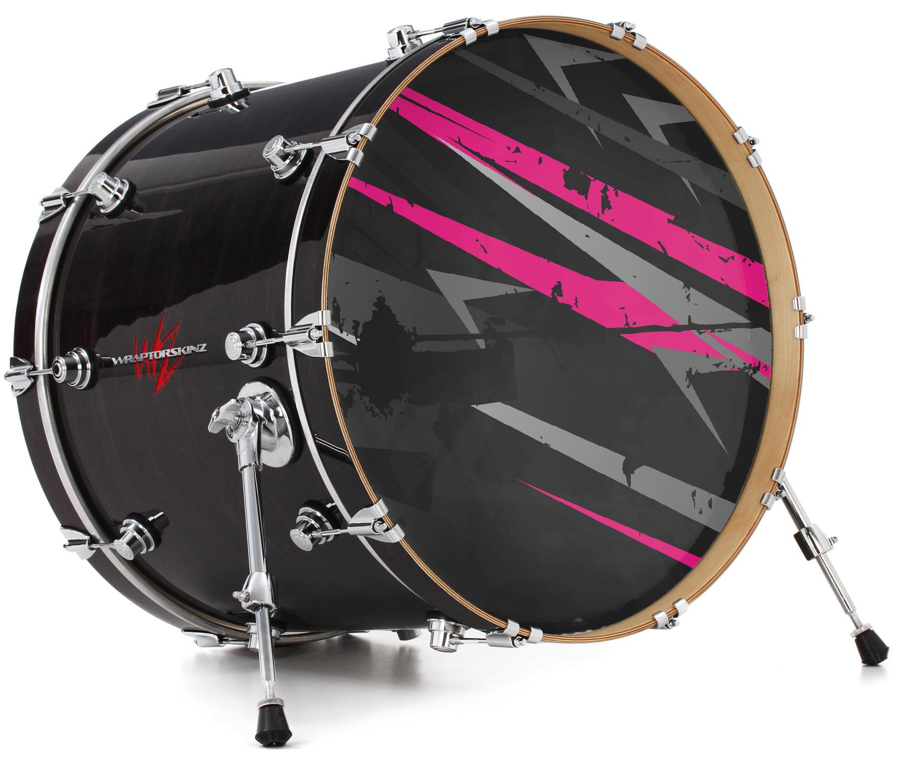 This design also available in other sizes. WraptorSkinz® skin wraps compatible with most kick drum heads. Printed using superb photo quality designs and vibrant colors printed with special fade resistant inks that last even in direct sun for years. WraptorSkinz are a composite three layer commercial grade materials vinyl. The bottom layer is a air release, grey block out removable adhesive that hides existing graphics on the drum head and is easily applied without air bubbles. The middle layer is a flexible vinyl printed with UV protected, fade resistant inks that deliver superb photo quality designs in vibrant colors. Finally, we bond a professional grade laminate over the entire skin adding a glossy protective finish.