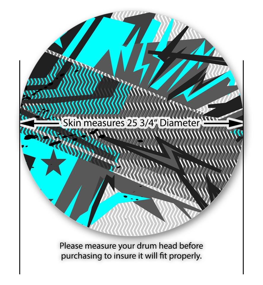This design also available in other sizes. WraptorSkinz® skin wraps compatible with most kick drum heads. Printed using superb photo quality designs and vibrant colors printed with special fade resistant inks that last even in direct sun for years. WraptorSkinz are a composite three layer commercial grade materials vinyl. The bottom layer is a air release, grey block out removable adhesive that hides existing graphics on the drum head and is easily applied without air bubbles. The middle layer is a flexible vinyl printed with UV protected, fade resistant inks that deliver superb photo quality designs in vibrant colors. Finally, we bond a professional grade laminate over the entire skin adding a glossy protective finish.