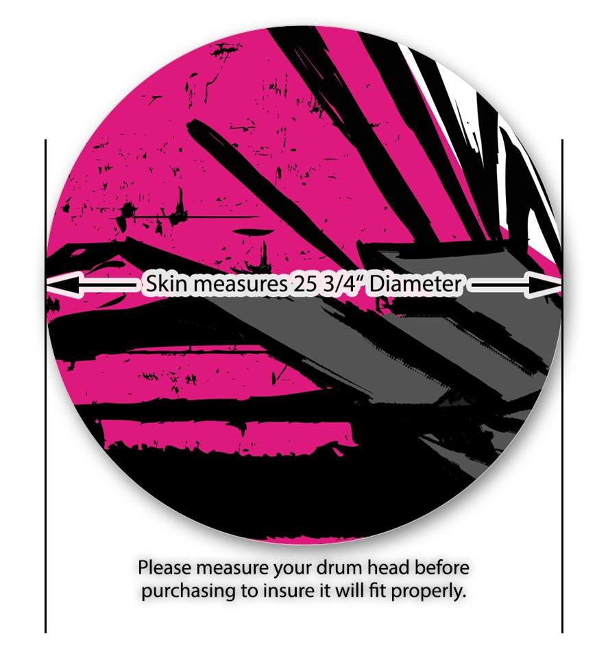 This design also available in other sizes. WraptorSkinz® skin wraps compatible with most kick drum heads. Printed using superb photo quality designs and vibrant colors printed with special fade resistant inks that last even in direct sun for years. WraptorSkinz are a composite three layer commercial grade materials vinyl. The bottom layer is a air release, grey block out removable adhesive that hides existing graphics on the drum head and is easily applied without air bubbles. The middle layer is a flexible vinyl printed with UV protected, fade resistant inks that deliver superb photo quality designs in vibrant colors. Finally, we bond a professional grade laminate over the entire skin adding a glossy protective finish.