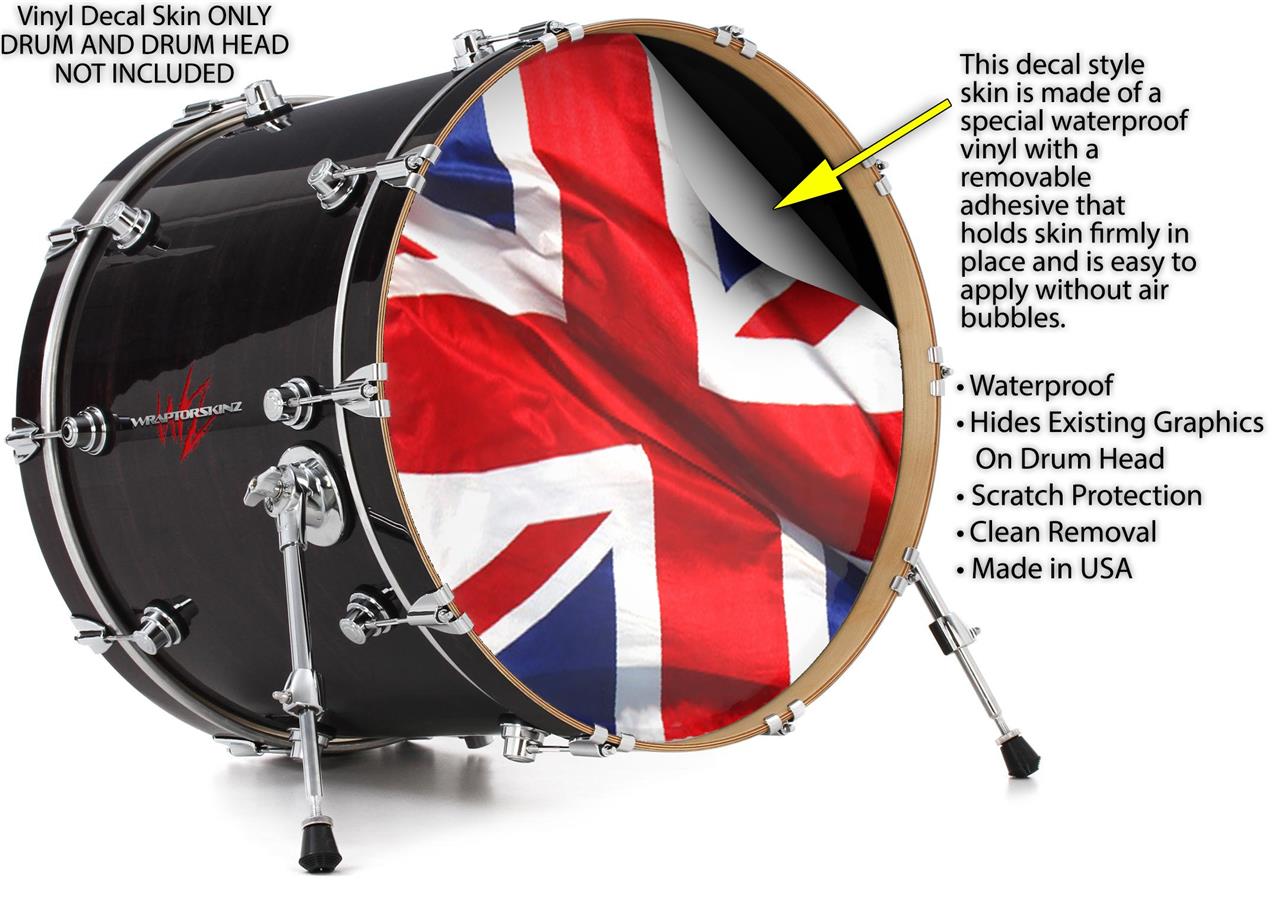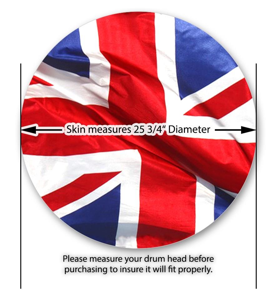Decal Skin works with most 26" Bass Kick Drum Heads Union Jack 01 - DRUM HEAD NOT INCLUDED