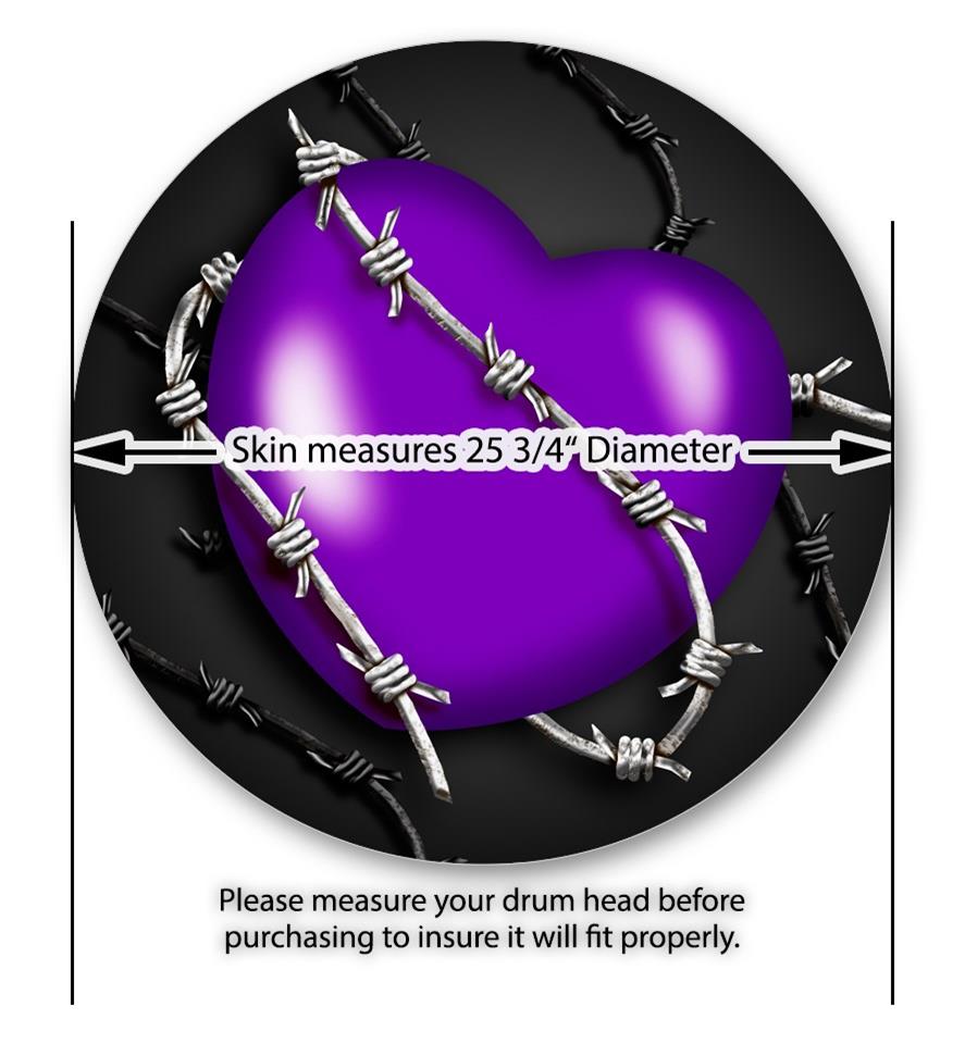 Decal Skin works with most 26" Bass Kick Drum Heads Barbwire Heart Purple - DRUM HEAD NOT INCLUDED
