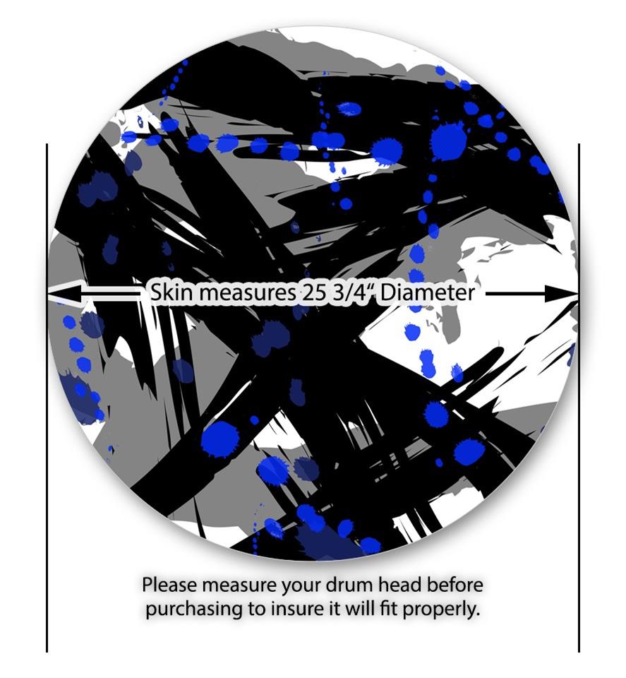 This design also available in other sizes. WraptorSkinz® skin wraps compatible with most kick drum heads. Printed using superb photo quality designs and vibrant colors printed with special fade resistant inks that last even in direct sun for years. WraptorSkinz are a composite three layer commercial grade materials vinyl. The bottom layer is a air release, grey block out removable adhesive that hides existing graphics on the drum head and is easily applied without air bubbles. The middle layer is a flexible vinyl printed with UV protected, fade resistant inks that deliver superb photo quality designs in vibrant colors. Finally, we bond a professional grade laminate over the entire skin adding a glossy protective finish.