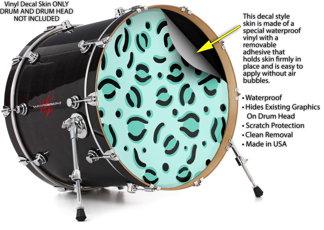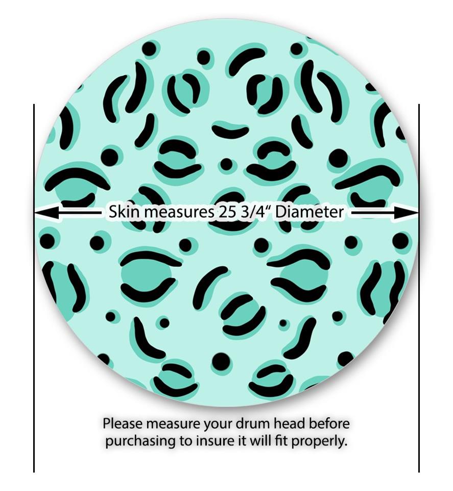 Decal Skin works with most 26" Bass Kick Drum Heads Teal Cheetah - DRUM HEAD NOT INCLUDED