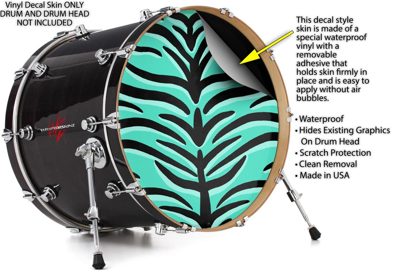 Decal Skin works with most 26" Bass Kick Drum Heads Teal Tiger - DRUM HEAD NOT INCLUDED