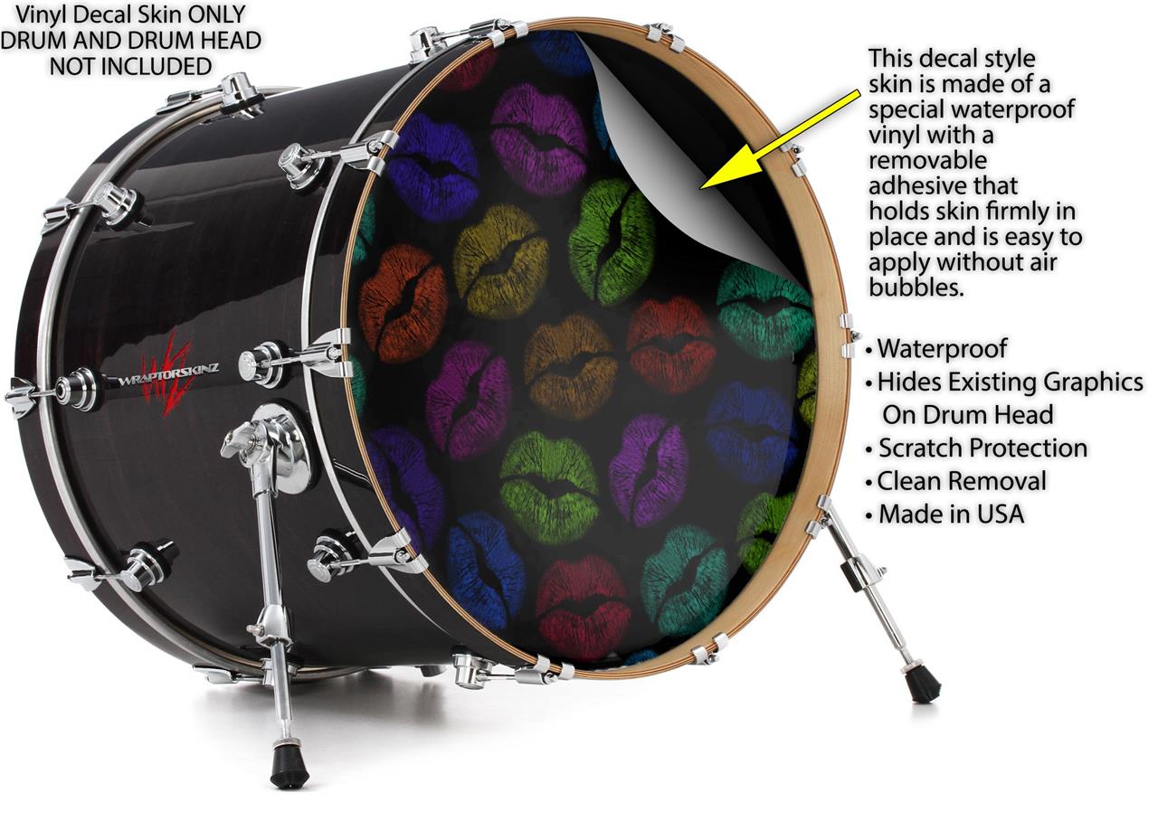 Decal Skin works with most 26" Bass Kick Drum Heads Rainbow Lips Black - DRUM HEAD NOT INCLUDED