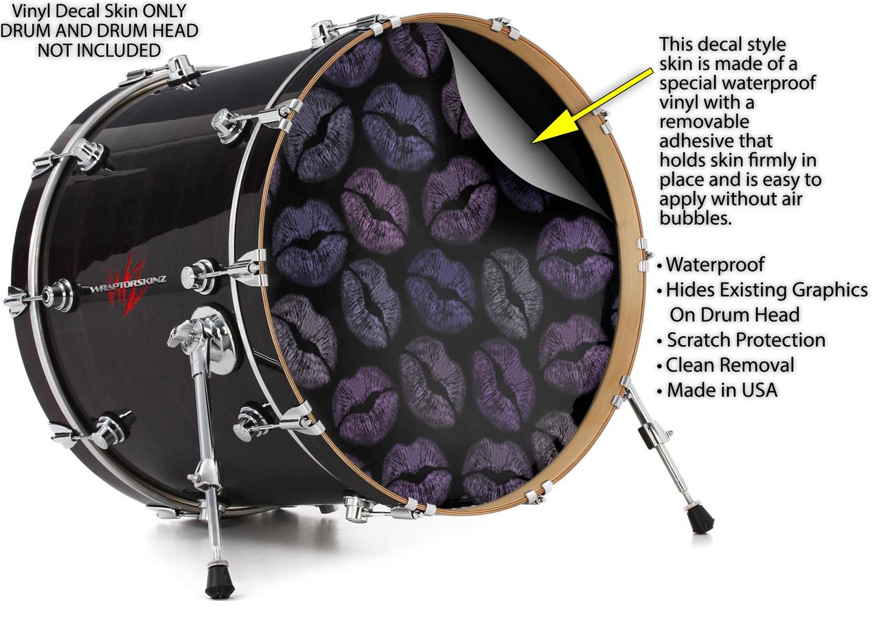 Decal Skin works with most 26" Bass Kick Drum Heads Purple And Black Lips - DRUM HEAD NOT INCLUDED