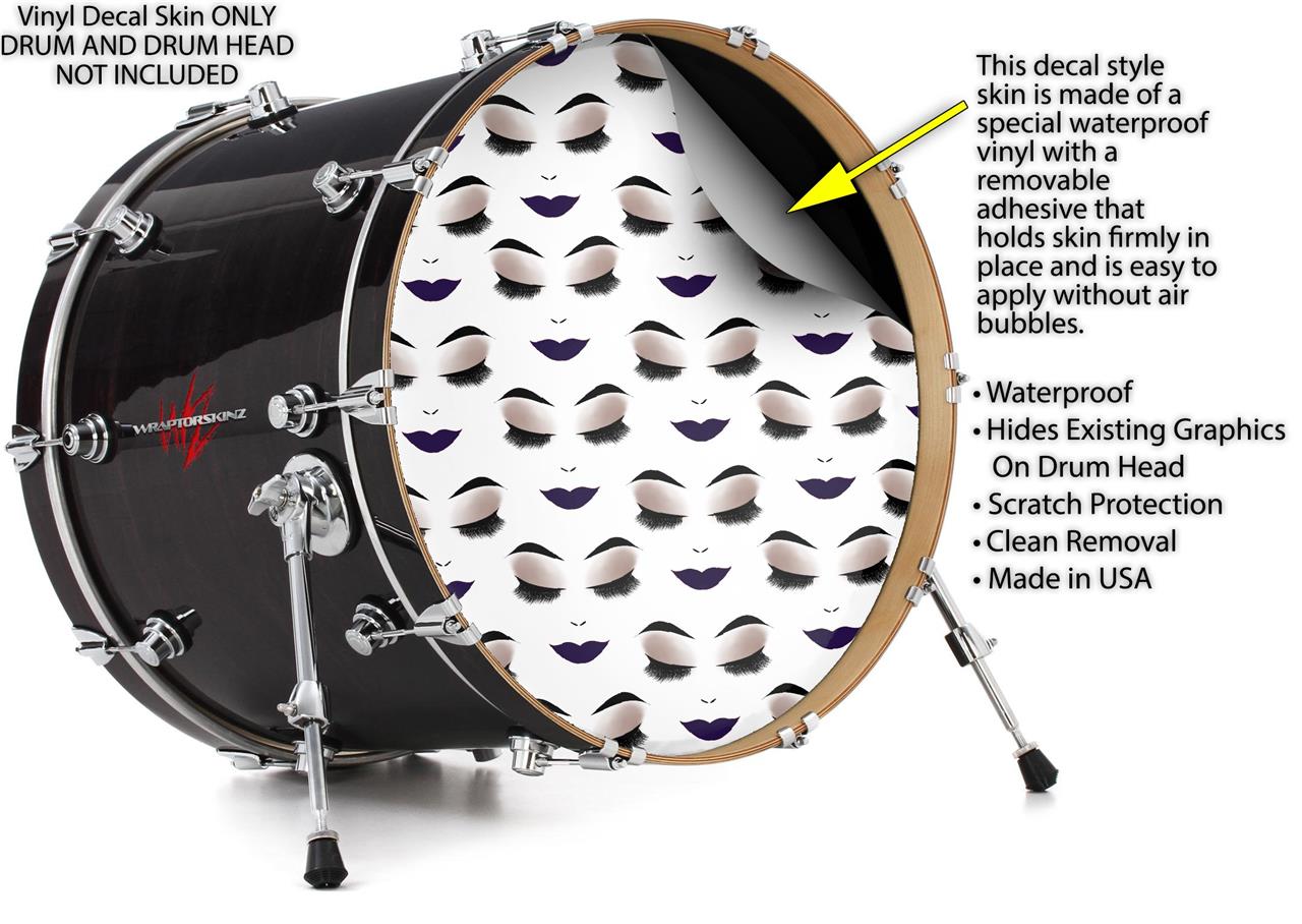 This design also available in other sizes. WraptorSkinz® skin wraps compatible with most kick drum heads. Printed using superb photo quality designs and vibrant colors printed with special fade resistant inks that last even in direct sun for years. WraptorSkinz are a composite three layer commercial grade materials vinyl. The bottom layer is a air release, grey block out removable adhesive that hides existing graphics on the drum head and is easily applied without air bubbles. The middle layer is a flexible vinyl printed with UV protected, fade resistant inks that deliver superb photo quality designs in vibrant colors. Finally, we bond a professional grade laminate over the entire skin adding a glossy protective finish.