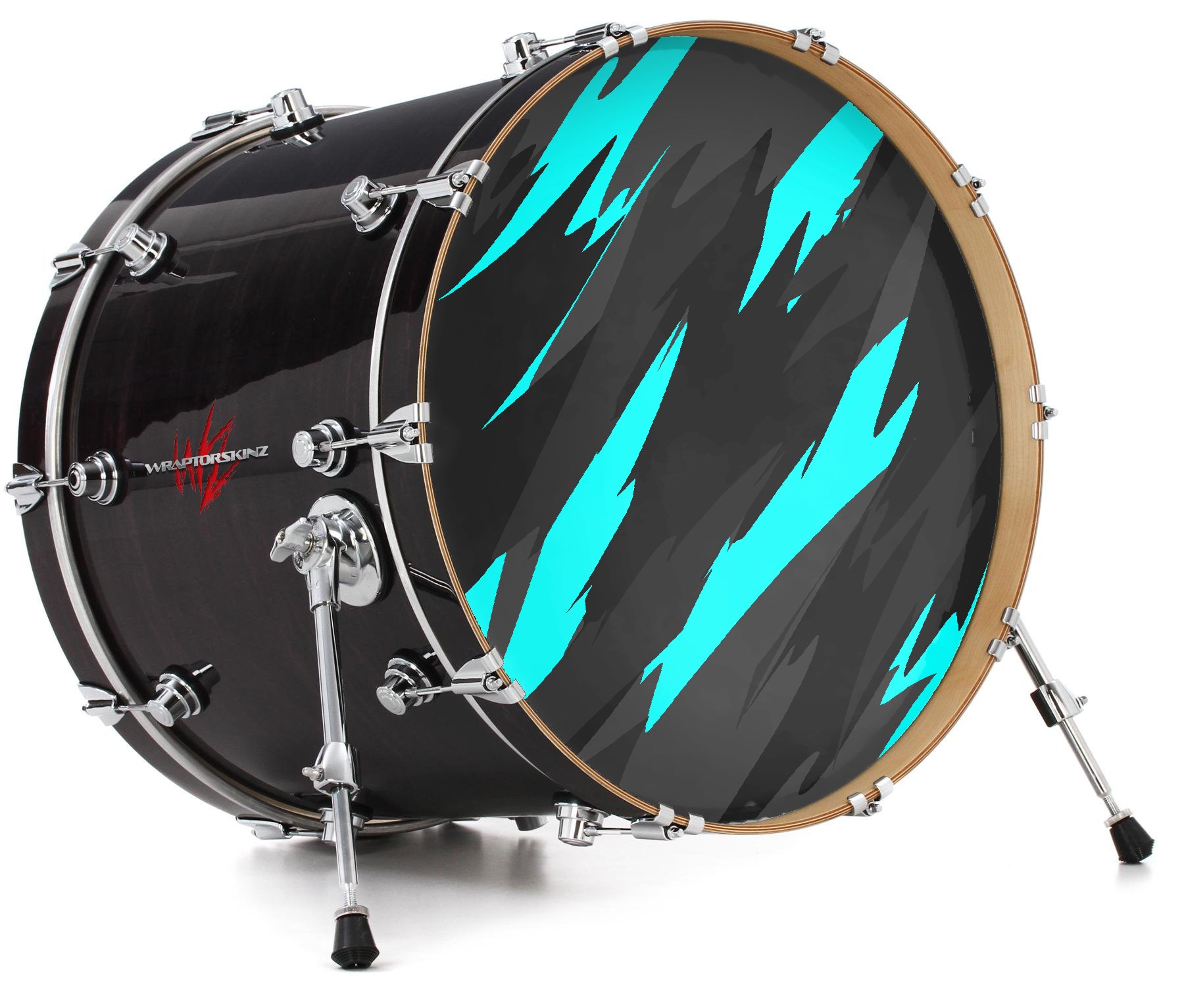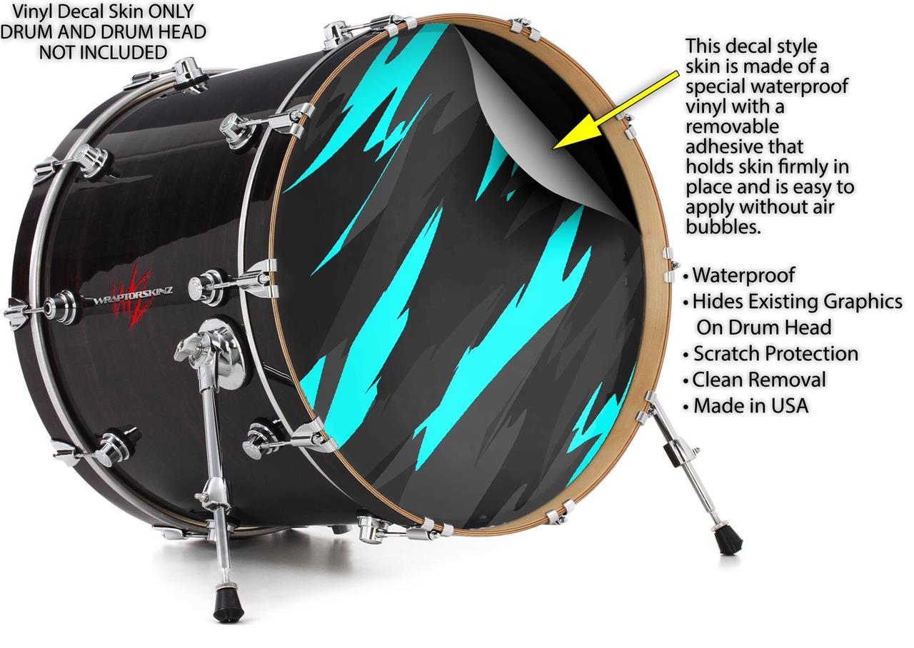Decal Skin works with most 26" Bass Kick Drum Heads Jagged Camo Neon Teal - DRUM HEAD NOT INCLUDED