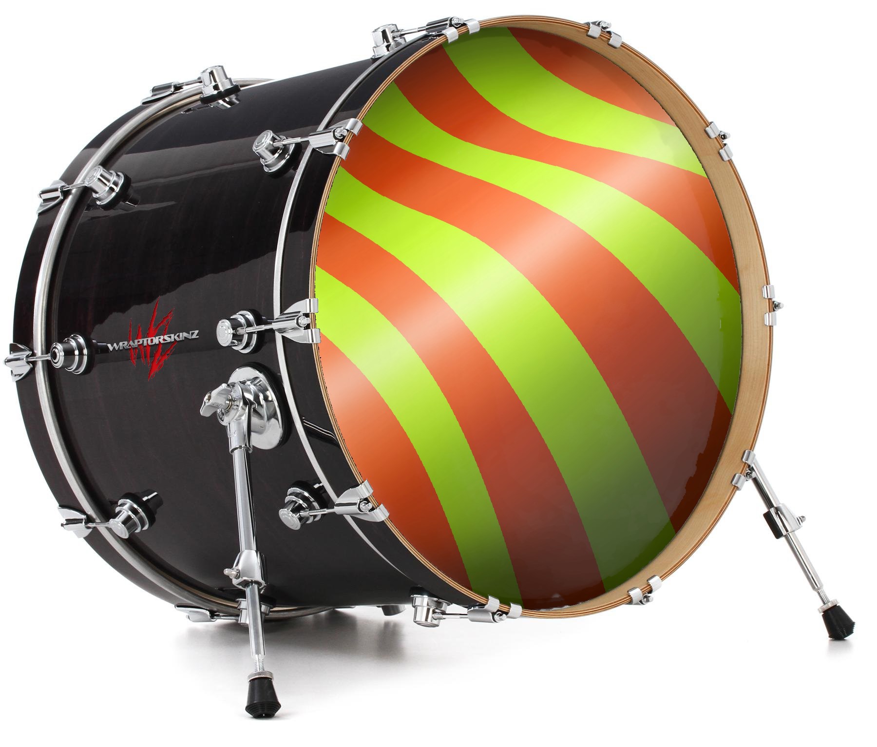Decal Skin works with most 26" Bass Kick Drum Heads Two Tone Waves Neon Green Orange - DRUM HEAD NOT INCLUDED